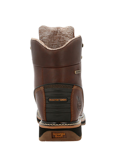 Georgia Boot AMP LT Edge Waterproof Work Boot is a Goodyear® welt constructed defined heel work boot. The upper is made from full-grain SPR™ leather and features a heel-stabilizing Counter Lock System.This men's waterproof lace up work boot has a waterproof lining covered by performance mesh and a 3-D molded counter pocket to lock your heel into place. Also inside is a removable AMP LT memory foam insole for customized comfort.A woven welt rib allows for resoling and provides exceptional lateral stability on this comfortable work boot. The EVA midsole provides responsive cushioning and a fiberglass shank provides stability and arch support. Beneath is a compression molded EVA midsole absorbs the shock of each step to guard against foot fatigue. The slip and oil resistant outsole feature a 90 degree heel made from heat, abrasion and chemical resisting Carbo-Tec Rubber. It meets ASTM F2892 electrical standards for soft toe safety footwear.