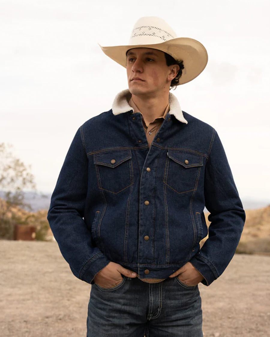 Men's Denim Jacket With Cream Sherpa & Fleece Lining - Hj114De