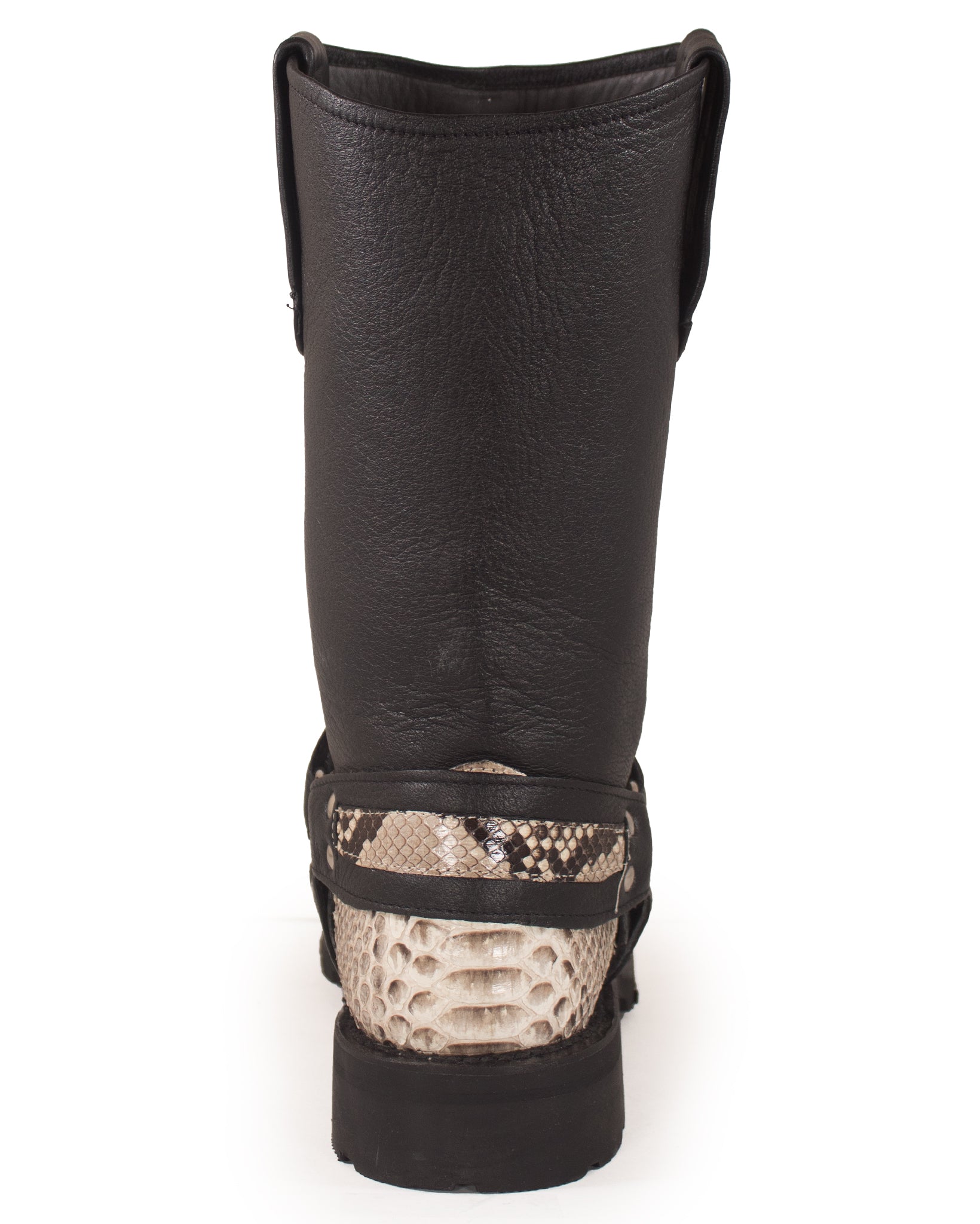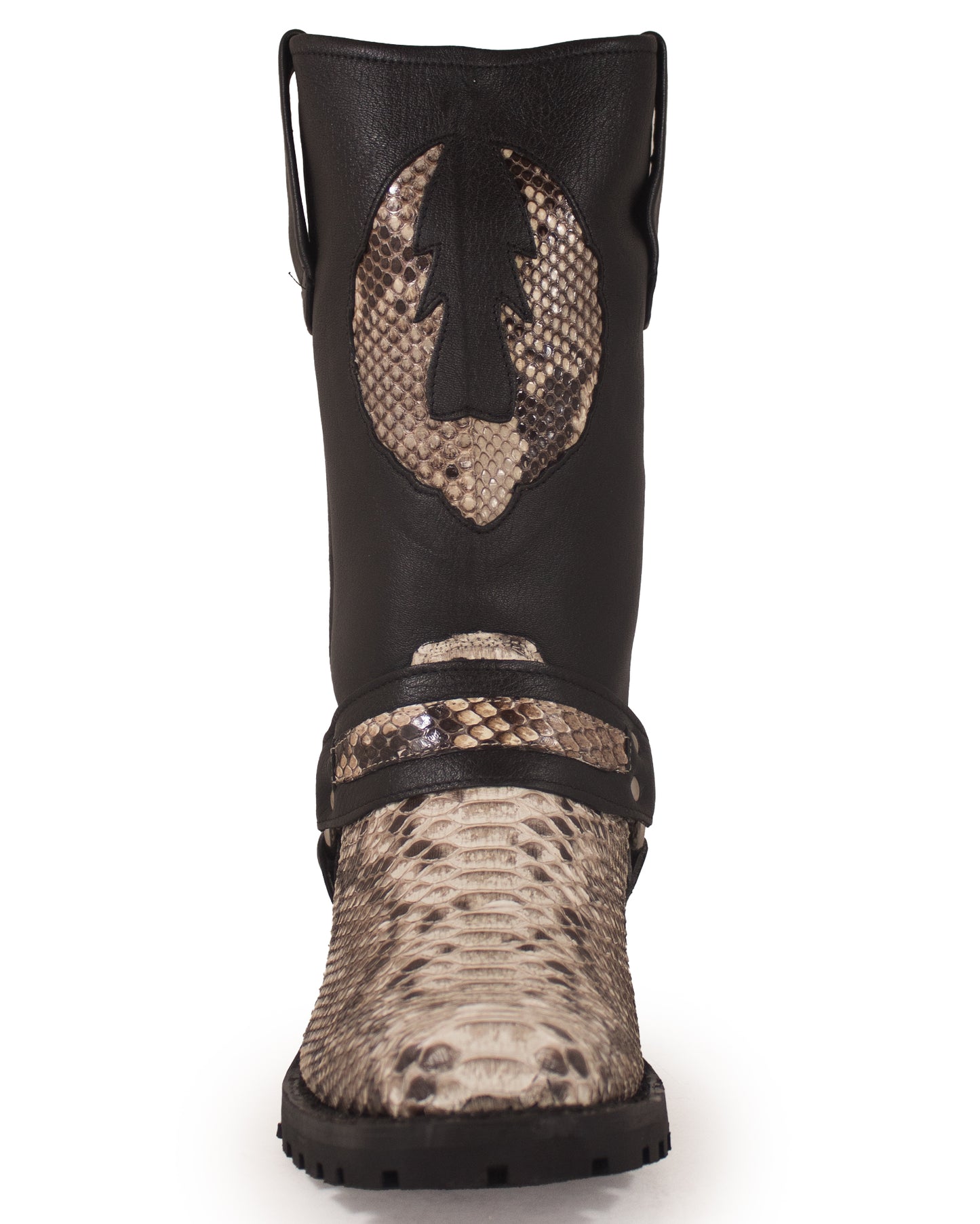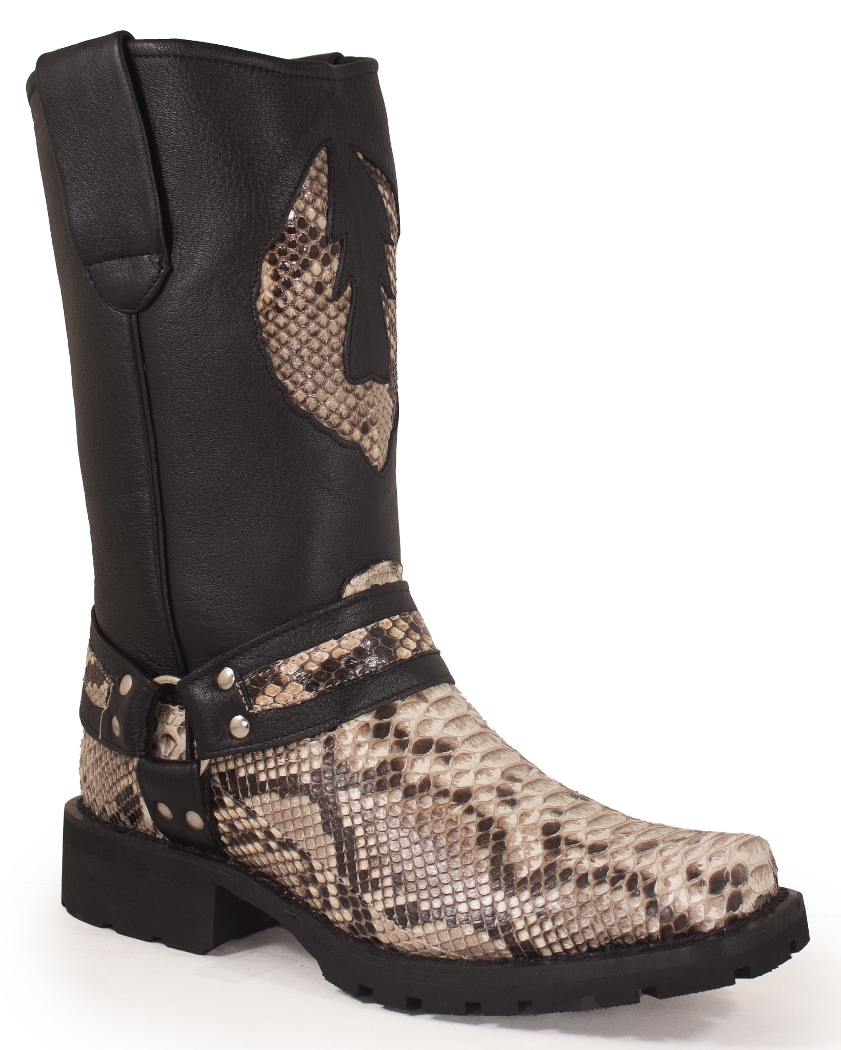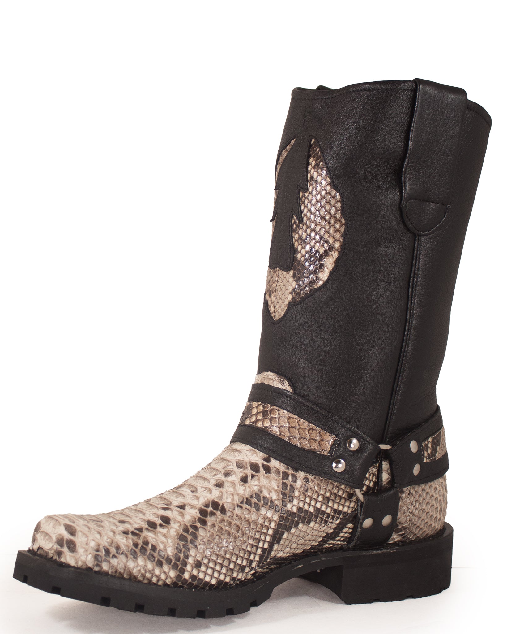 Designed for optimal performance, our Natural Python Motorcycle Boots are equipped with rugged rubber soles, providing excellent traction, stability, and grip, whether you're hitting the open road or taking a leisurely stroll. The sturdy heel gives you an elevated stance with a nod to traditional Western style. The embroidered shaft height of 13 inches showcases the intricate detailing of these Natural Python Motorcycle Boots, setting them apart from the everyday boot. With this perfect combination of fashion and functionality, you can elevate your wardrobe while showing off your unique style and love for the open road. Don't miss out on these magnificent boots; experience the incredible craftsmanship firsthand and let the journey begin.