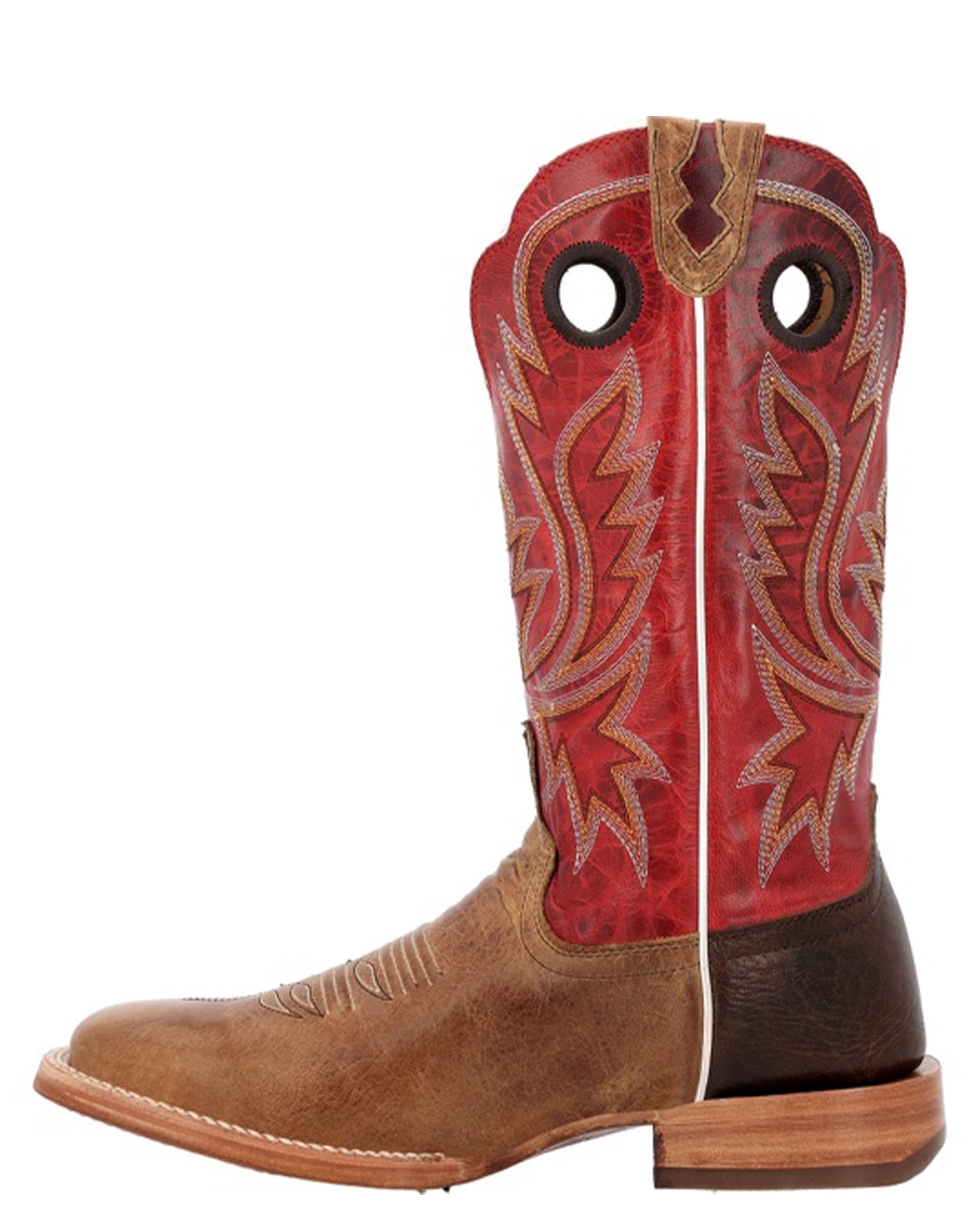 The men’s 13” Sand Tobacco and Cayenne style #DDB0468 features full-grain bison leather, a shrunken bull hide leather heel counter, leather underlay in tabs, fully leather lined shaft and foot, and has a thin hybrid leather insole with heel tuck and memory foam. This style also features the Durango® patented fiberglass Dually Shank System™ for twice the midfoot and torsion stability, stirrup-friendly rolled shank area, hand-nailed and stained genuine leather outsole, ¾ genuine Goodyear® welt construction and genuine leather welt with double row cotton stitch.