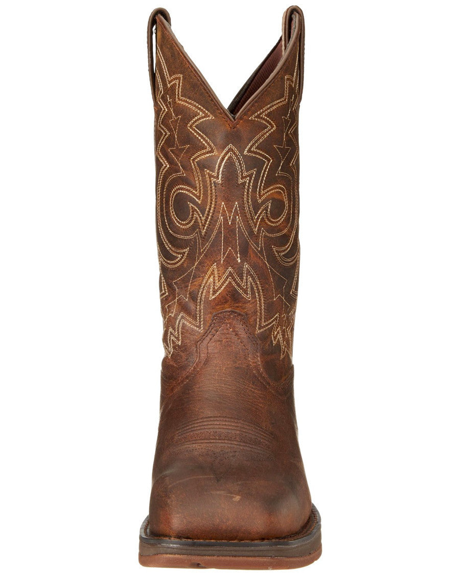 Combining rugged toughness and western style, these Durango Rebel boots will go from the job site to a night out with ease. The steel toe, removable cushion flex contoured footbed and rubber outsoles will provide comfort, safety and durability for the toughest work environment. The western stitch detail, pull tabs, dip openings all on distressed leather give these boots a fashionable edge.