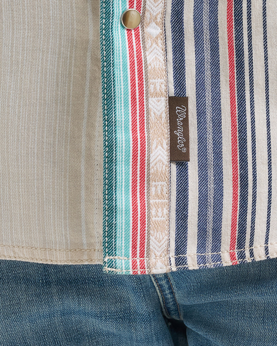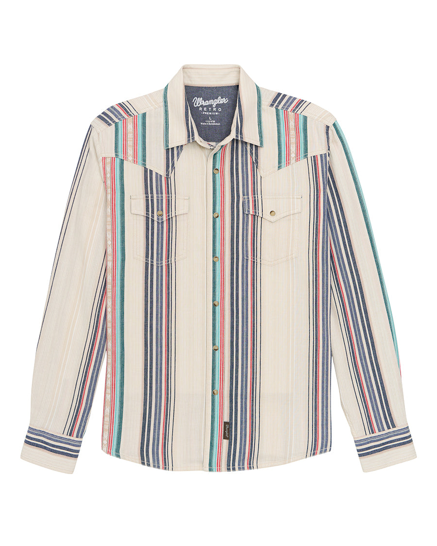 - Wrangler Retro® Premium Long Sleeve Snap Shirt - Modern Fit for Men in Tan Multi Stripe