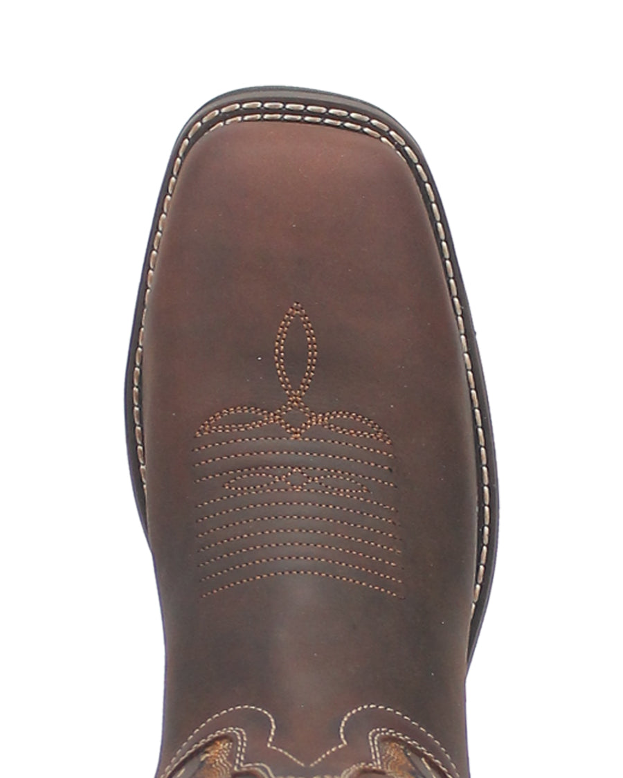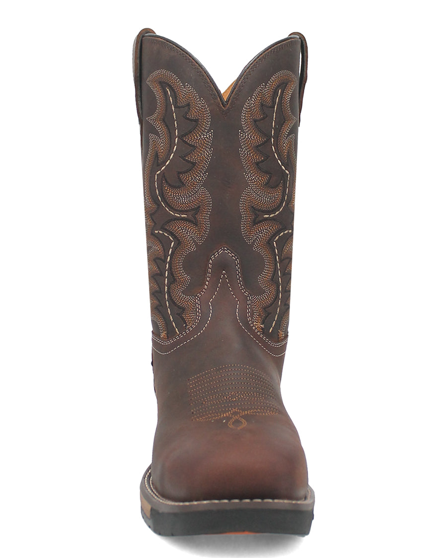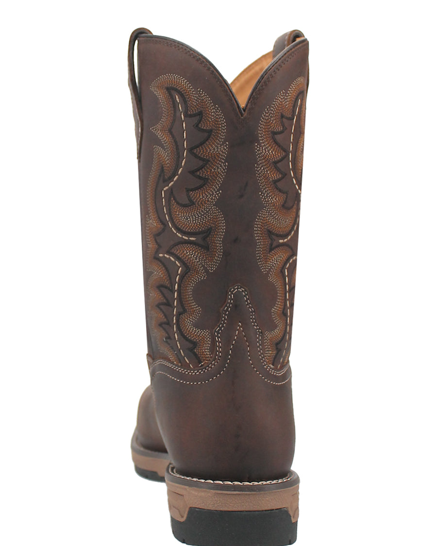 The Stringfellow Laredo steel toe work boot is made for a champs. This 11-inch boot features a broad square steel toe, low walking heel and removable cushion orthotic. Western stitching on the shaft, pull-on tabs and an oil and heat resistant rubber outsole make this boot a trusty and reliable option for knocking out the day.