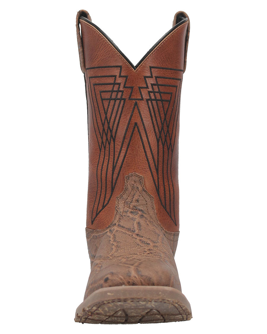 The elephant print on leather foot has rich textured detail and is offset by the geometric stitch design on the contrasting upper. Feature broad square toe, stockman heel and Ortholite comfort inset. The rubber outsole is lightweight and long-wearing.