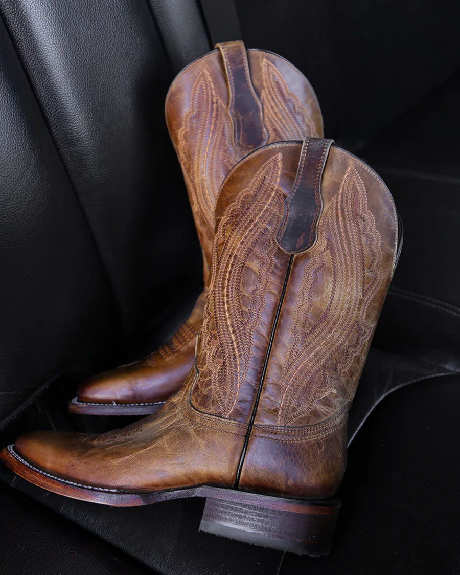 Elegant, rugged, and timeless. The perfect combination of style and practicality with their rugged elegance. The rich, honey-hued leather with an embroidery pattern through its 12-inch shaft. The color gives the boots a classic, timeless look that can be paired with a variety of outfits. The boots come with a low and comfortable stacked heel of 2 inches, which is perfect for comfortable wear throughout the day. The wide square toe gives them a sleek and refined look, while still maintaining that rugged edge.