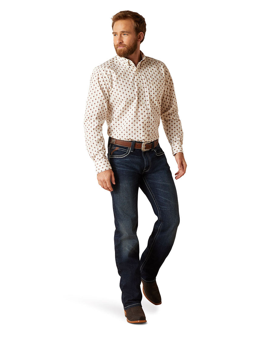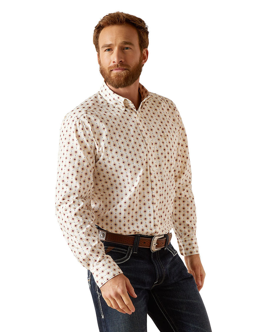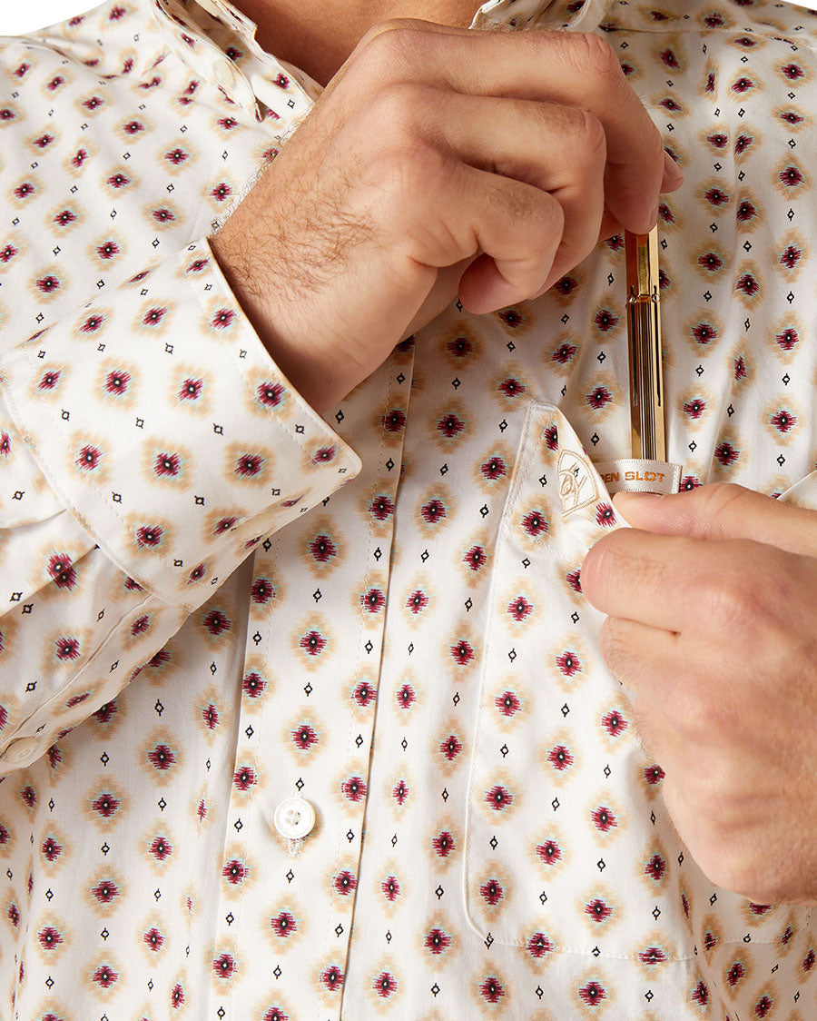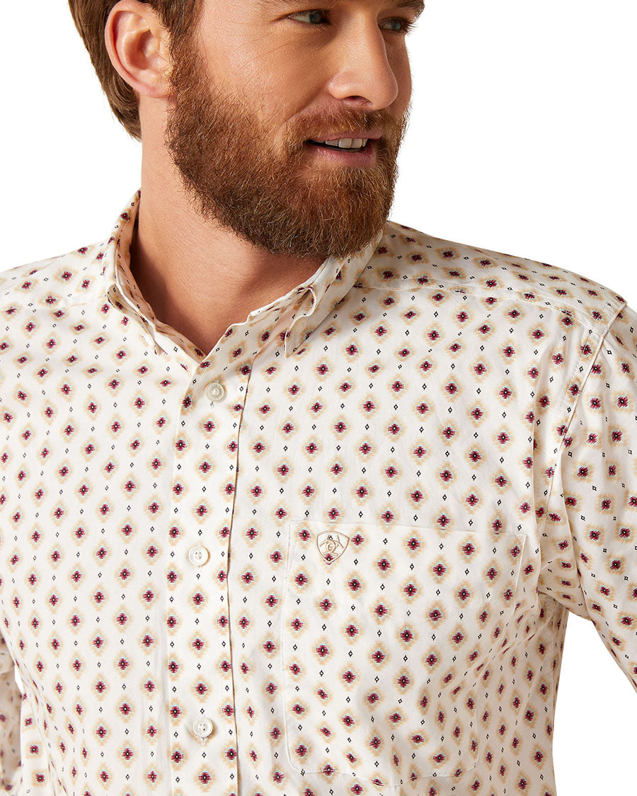 Featuring a timeless button-down design, this shirt showcases a woven placket label. It is meticulously crafted from premium printed poplin, boasting 100% cotton composition. Imported for exceptional quality.