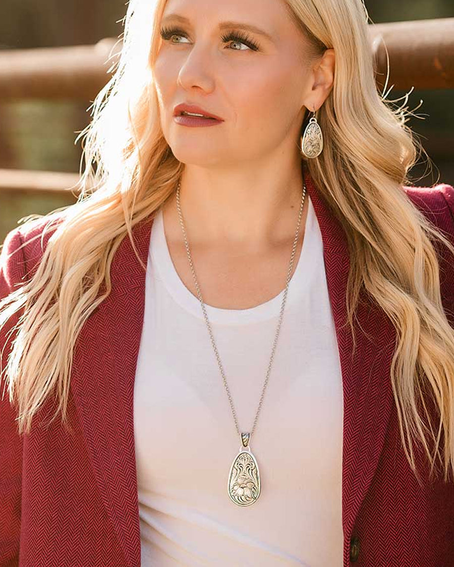 Find the feeling of a field of blooming wildflowers with this incredible design. The pendant of the necklace is a silver tone oval shape that hangs from a 19 inch silver tone adjustable chain. Detailed engraving creates the necklace. Within the engraving is a large flower framed by whisps that add grace and elegance to the design. A deep antiquing brings out each intricate line in the engraving of the Wildflower Impressions Necklace.