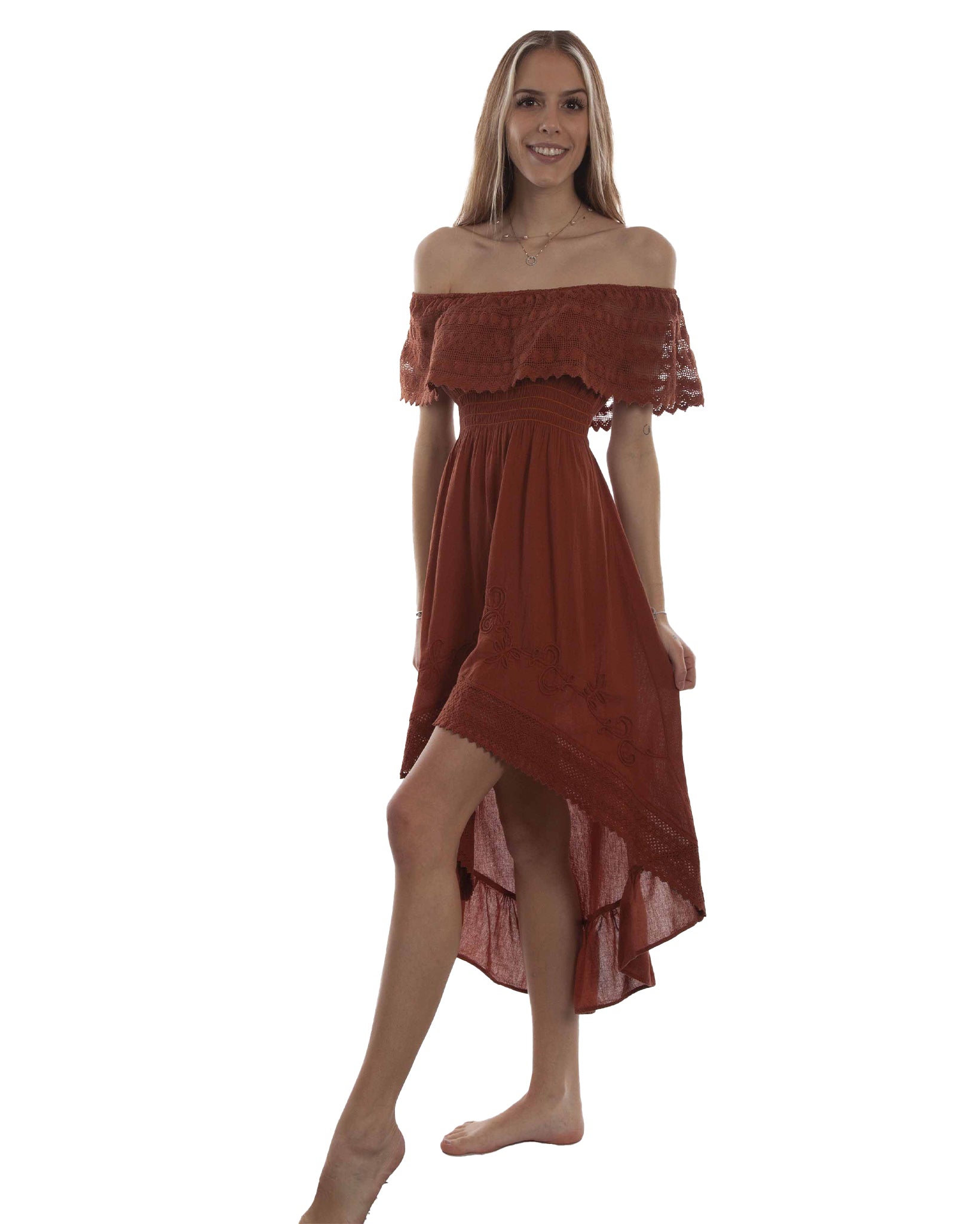 For the best leather accessories, leather goods, and fine western clothing, look no further than Scully Leather. These high quality goods are crafted from the finest materials available. This item features 100% cotton materials, elastic knit waist, and soutashe pattern. Stay stylish in this great dress.