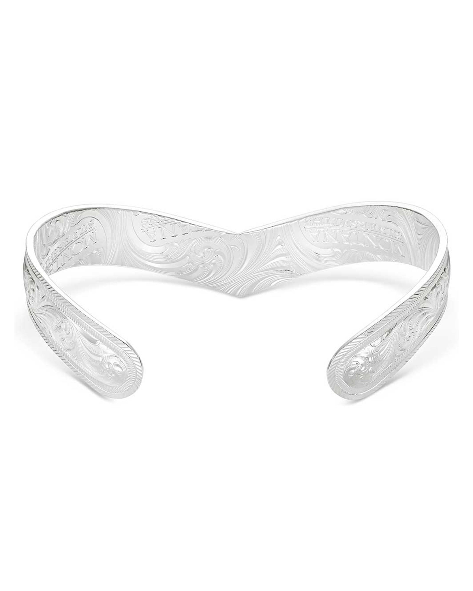 Simple and sophisticated, the Out West Elegance Cuff Bracelet brings timeless beauty to your wardrobe. The silver finished cuff features bright cut engraving for added detail and shine. A pointed shape adds modern flair to this classic piece.
