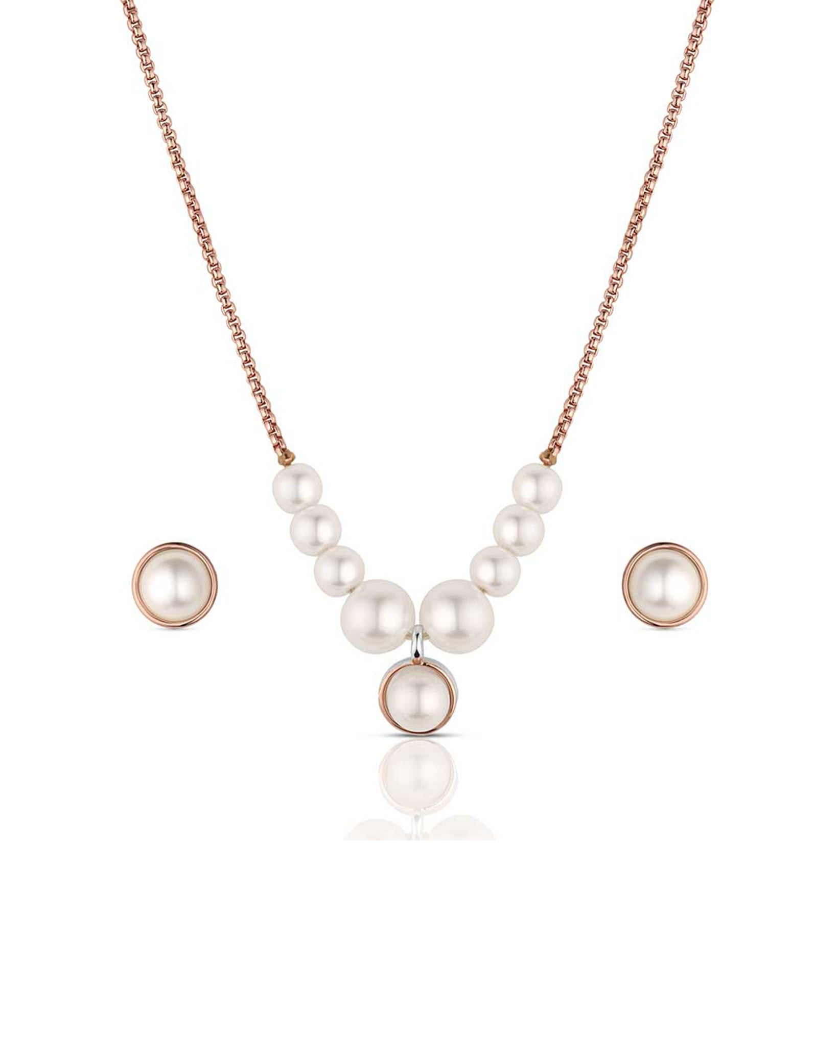 Elevate any outfit with the Pearl of the Plains Jewelry Set, featuring a 16 inch rose gold tone cable necklace with a 3 inch extender and matching post earrings. The circular design accented with shimmering rose gold tones brings a timeless, sophisticated finish, perfect for adding a polished touch to everyday wear, weekend outings, or special occasions.