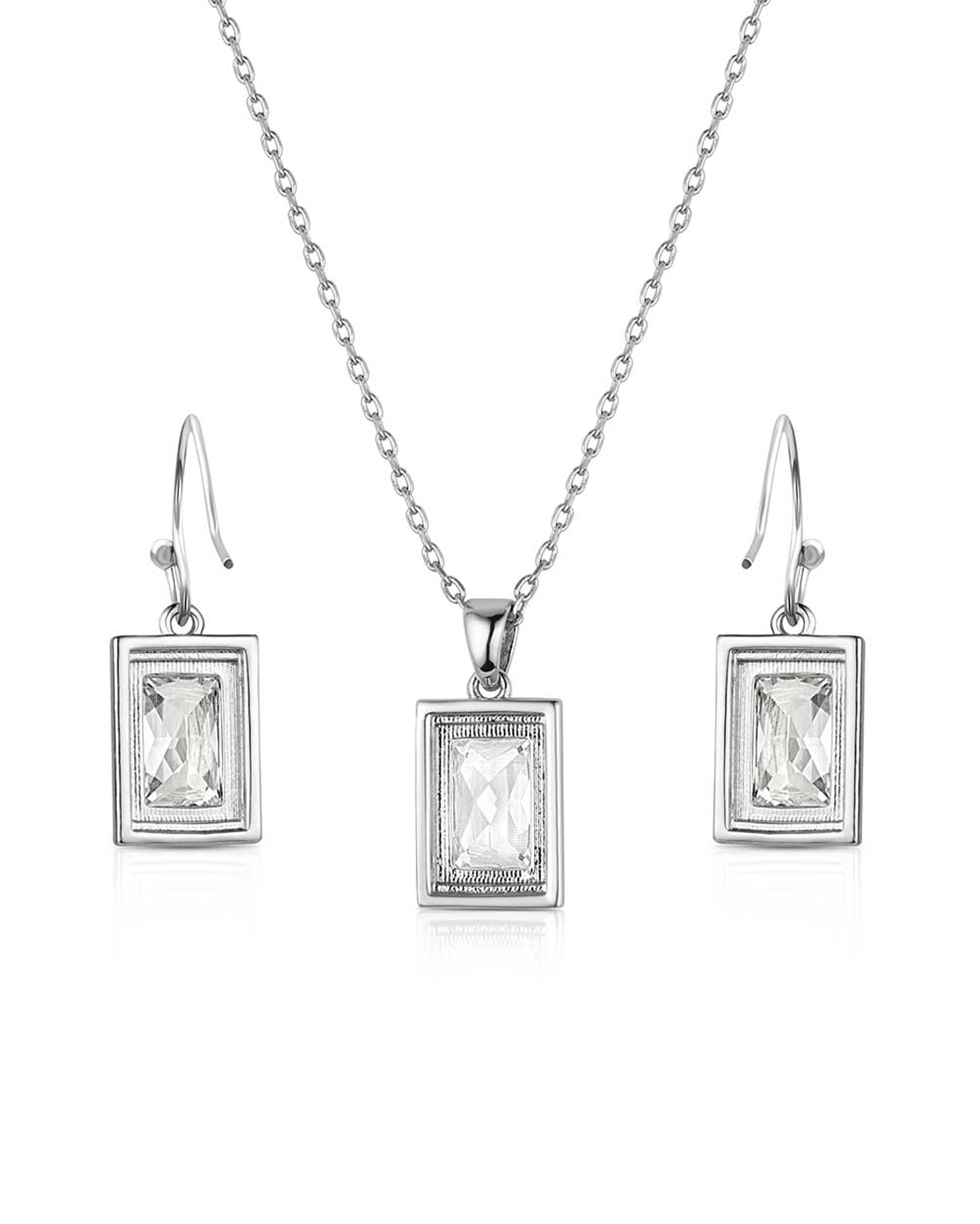 Stack the deck in your favor with the Play Your Cards Right Jewelry Set. Crafted with silver tones and accented with crystals, this set includes a 19-inch necklace with a secure lobster clasp and matching dangle earrings. The rectangular stones catch the light like a winning hand, perfect for turning heads whether you're going all in or playing it cool.
