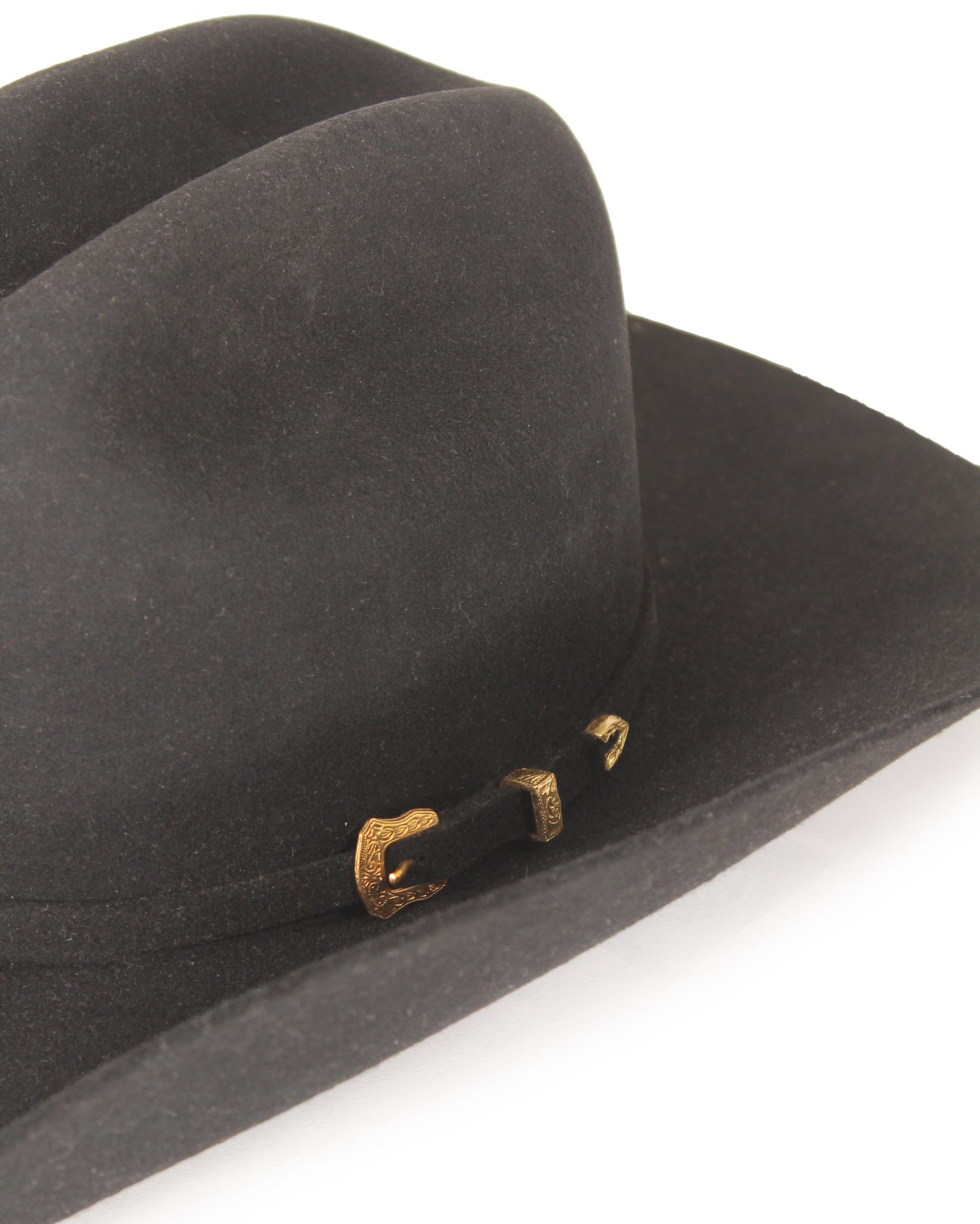 - Self-Banded Hat Band Accented with a 3 Piece Silver Buckle Set