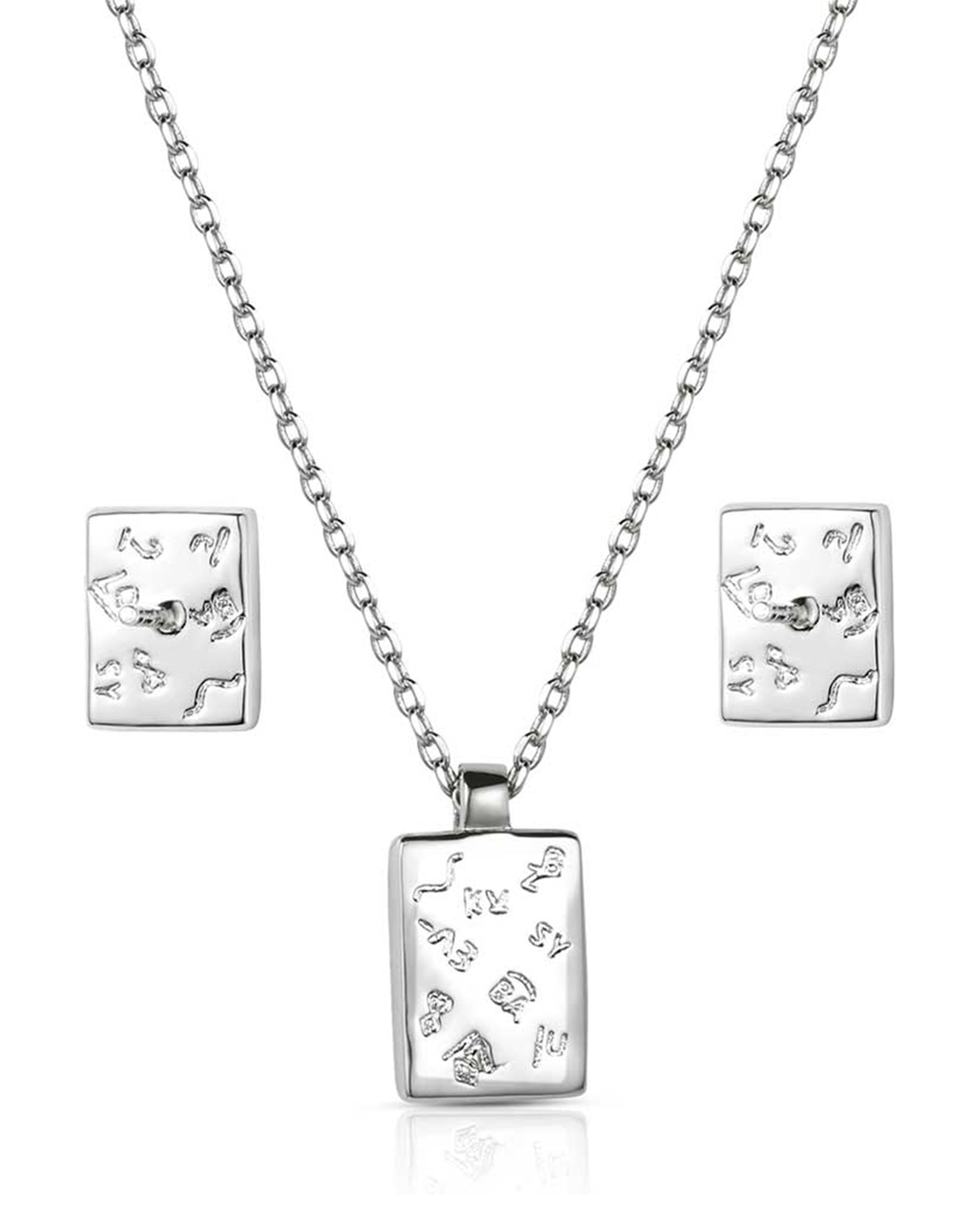 The Rio River Blue Jewelry Set offers a refined and understated design, showcasing a square turquoise pendant complemented by coordinating post-back earrings. This graceful ensemble introduces a lively splash of color and sophistication, ideal for enhancing any outfit with subtle elegance.