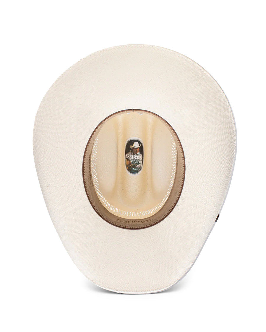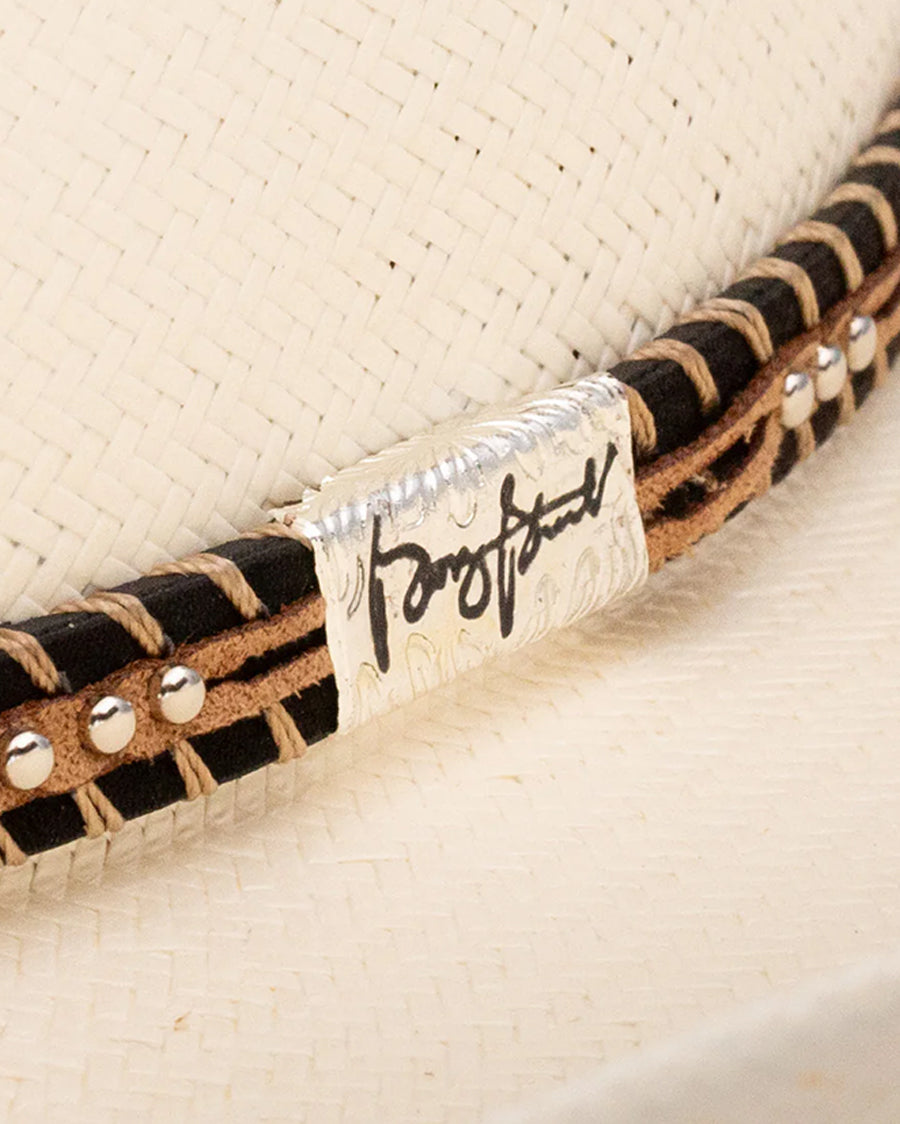 Check “yes” for the 10X Saddlebrook Cowboy Hat. Part of our George Strait Collection, the Saddlebrook is a 10X vented straw hat with a 4 1/4" brim, a 4 1/8” crown, and a Dri-Lex sweatband for summer days and rodeo nights. The leather sweatband offers nail-head detailing and a pendant design bearing King George’s signature.