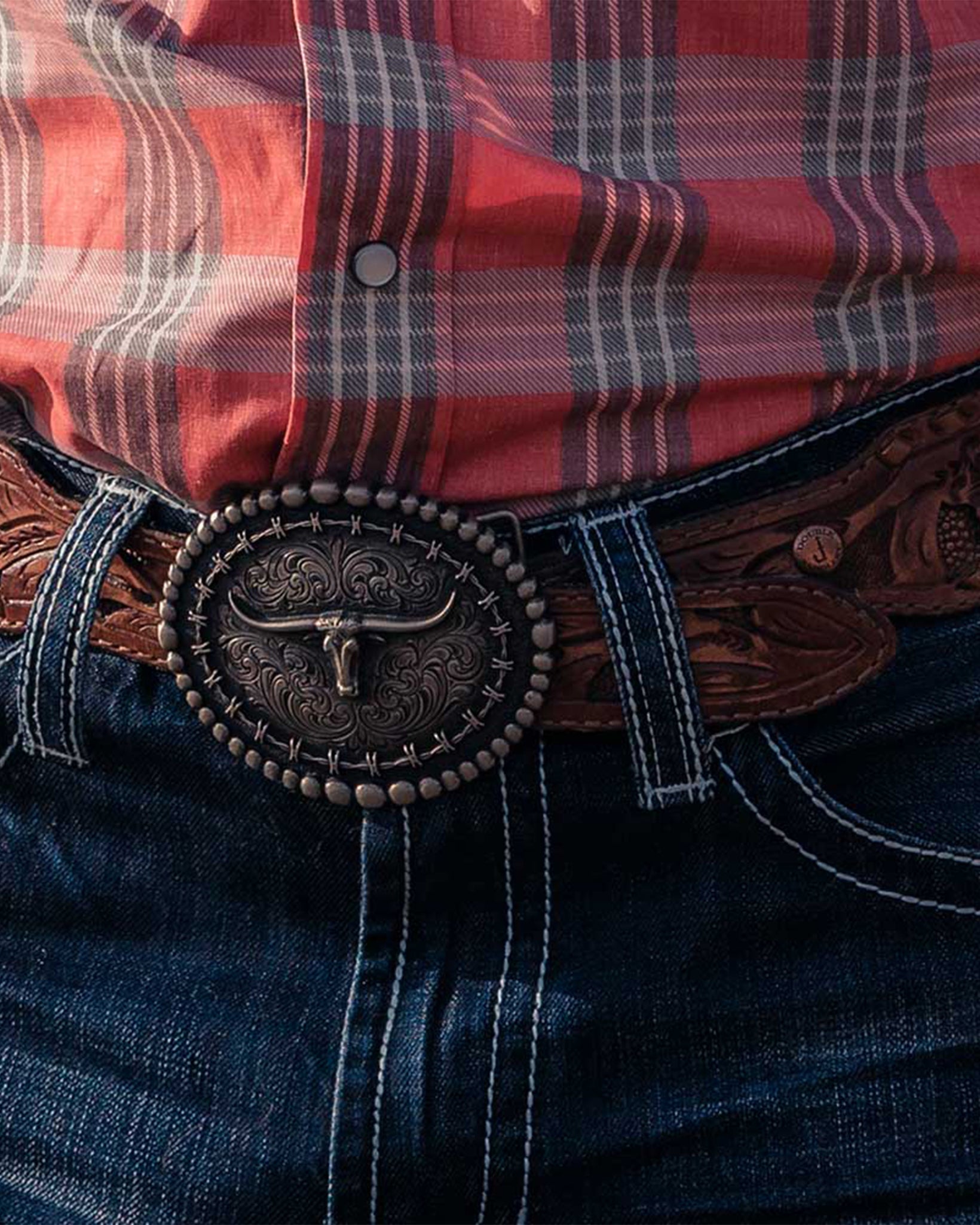 Rustic Barbed Wire Longhorn Buckle
