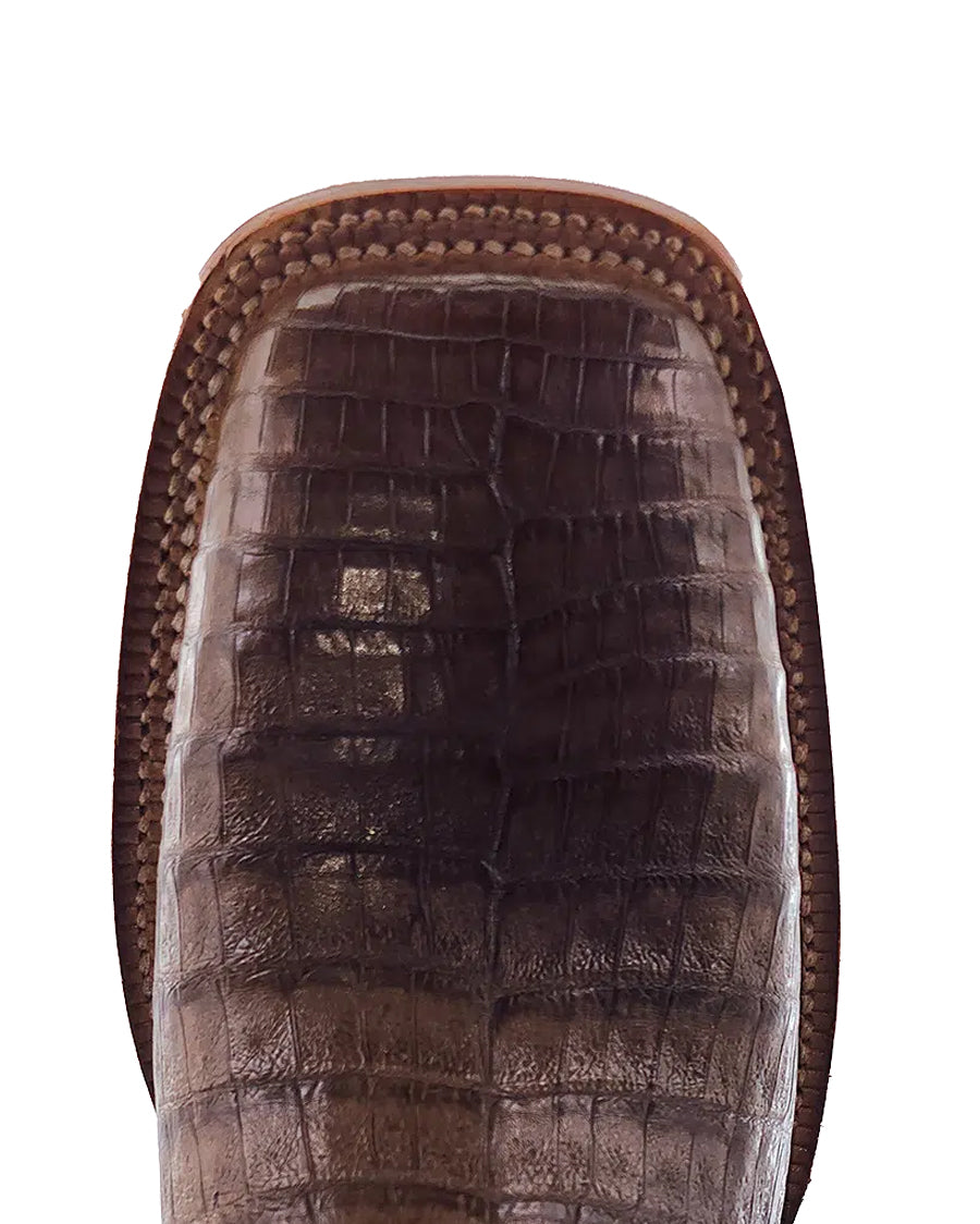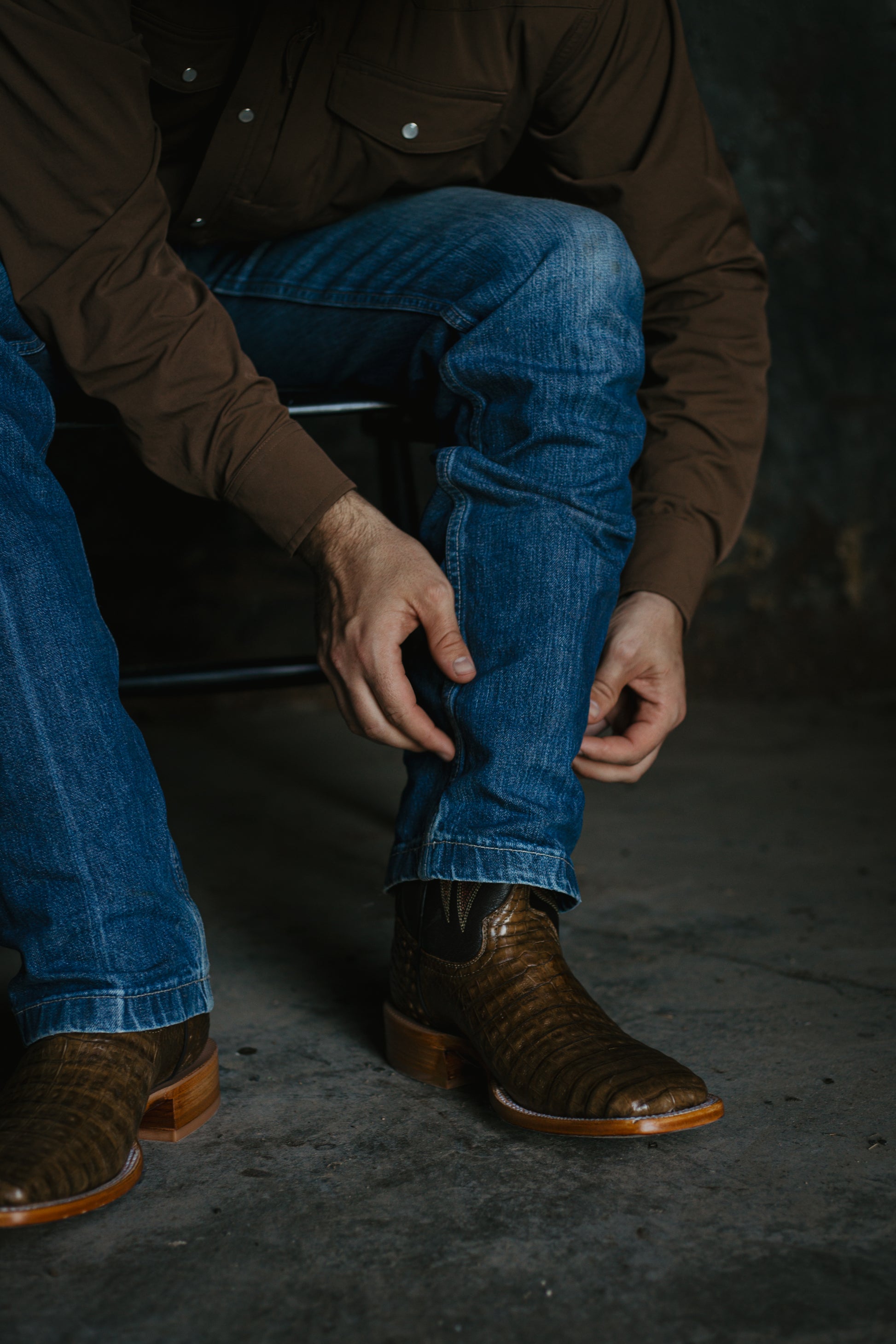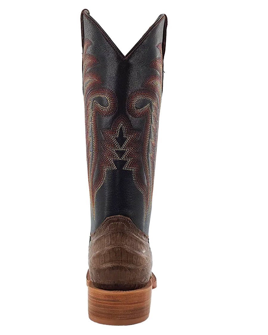 R. Watson presents these coco caiman belly and espresso goat exotic western boots. These boots have a 10 row stitch pattern, R. Watson comfort system, all leather stacked heel, counters, solid steel shank, and 10 iron outsole. 13″ total in height.