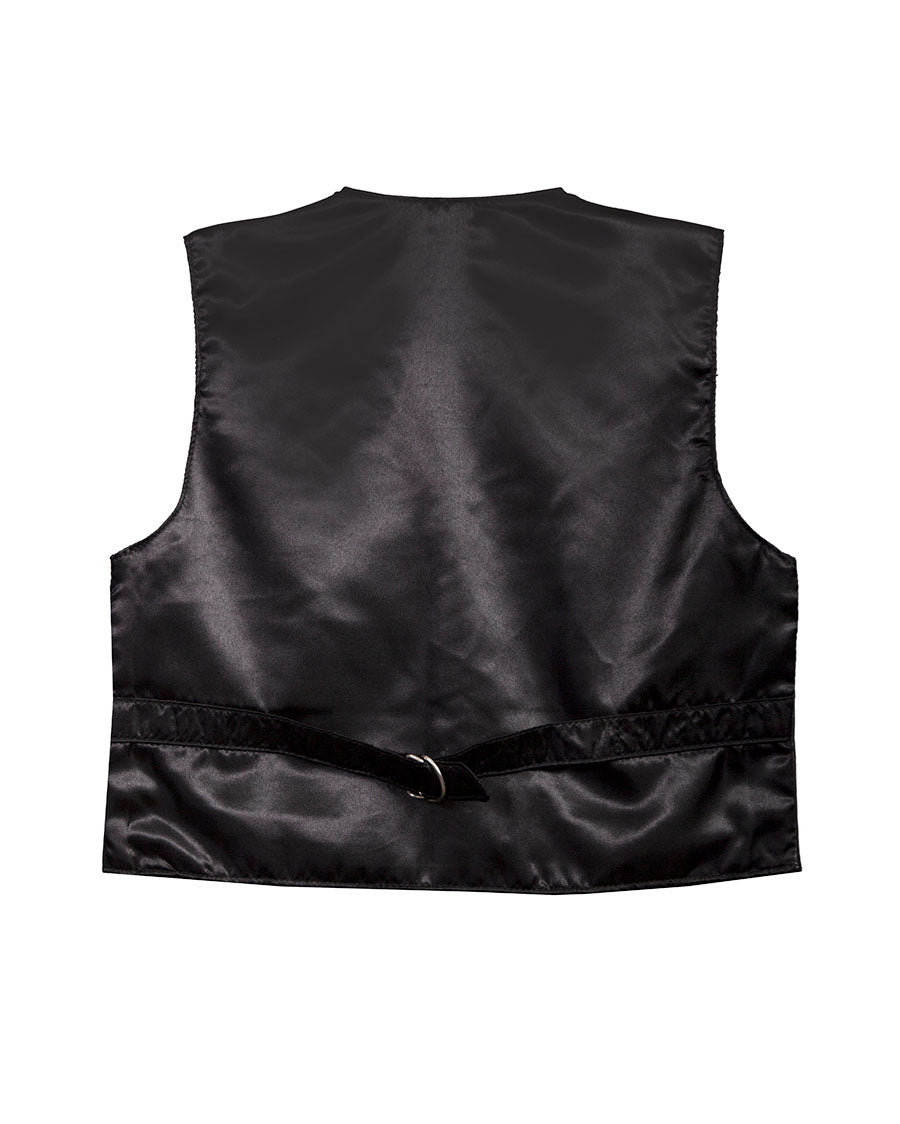 Kid's boar suede vest. Satin back with adjustable cinch waist. Snap front. Two front welt pockets. Acetate lining. Import.