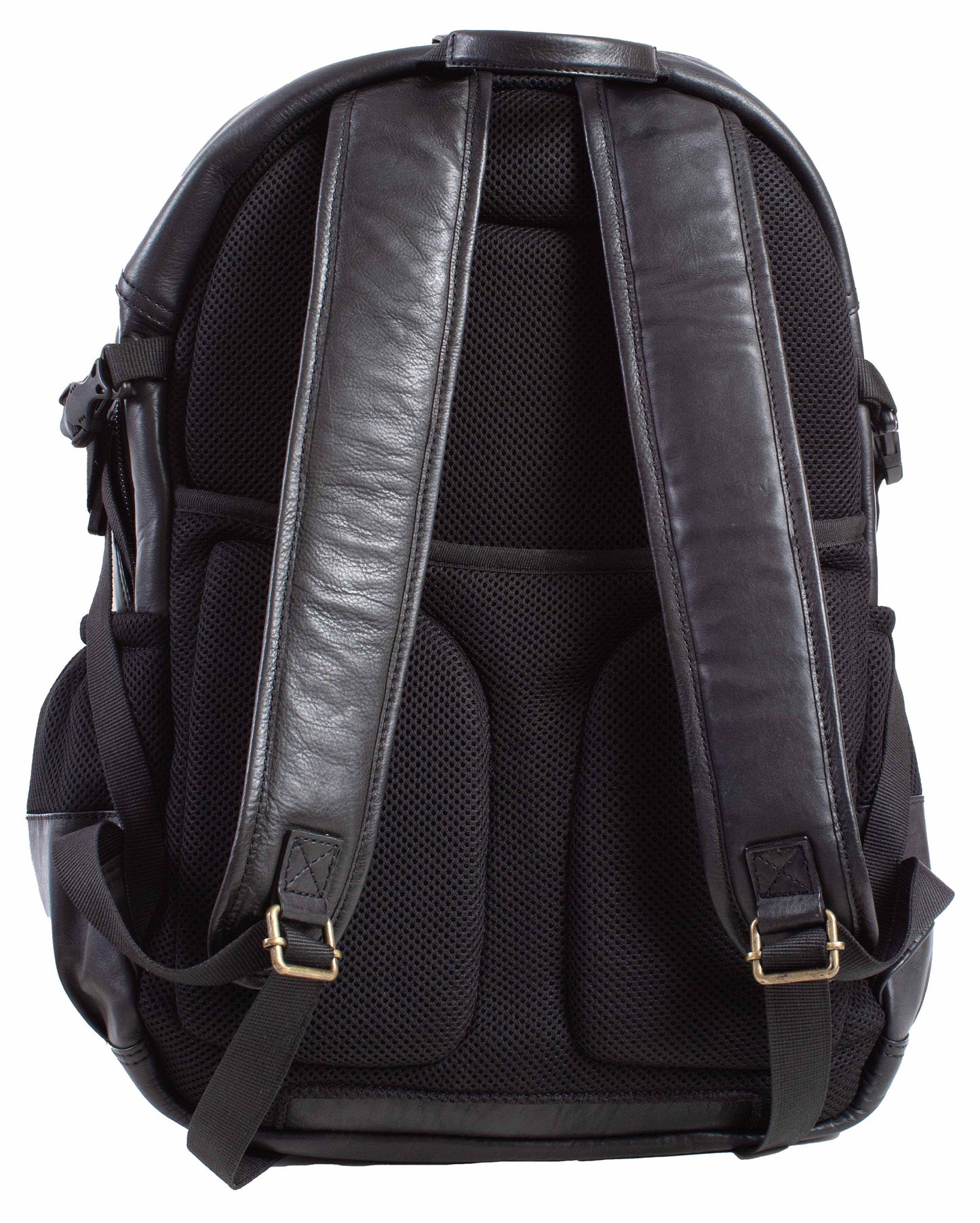 This Solvang Leather Backpack boasts a sophisticated and functional design, featuring four zippered compartments for optimal organization and storage. Made from top grain cowhide leather, this backpack is both durable and sleek, with a padded rear compartment large enough to fit a 16" laptop or tablet. The velcro strap ensures that the device stays in place, providing added security. The second zipper opens to a spacious main compartment, perfect for storing bulkier items, while the third zipper contains small pockets, two pen pockets, and credit card slots. The fourth zipper is designed for smaller essential items, and there are also two exterior zipper pockets for keys and easy access to a passport. Additional features include a trolley sleeve, a breathable mesh back panel, and adjustable straps with metal hardware for durability. With two side pockets for extra storage, this backpack is the perfect choice for work, travel, and everyday use, offering a stylish and practical way to carry all your personal and professional items.