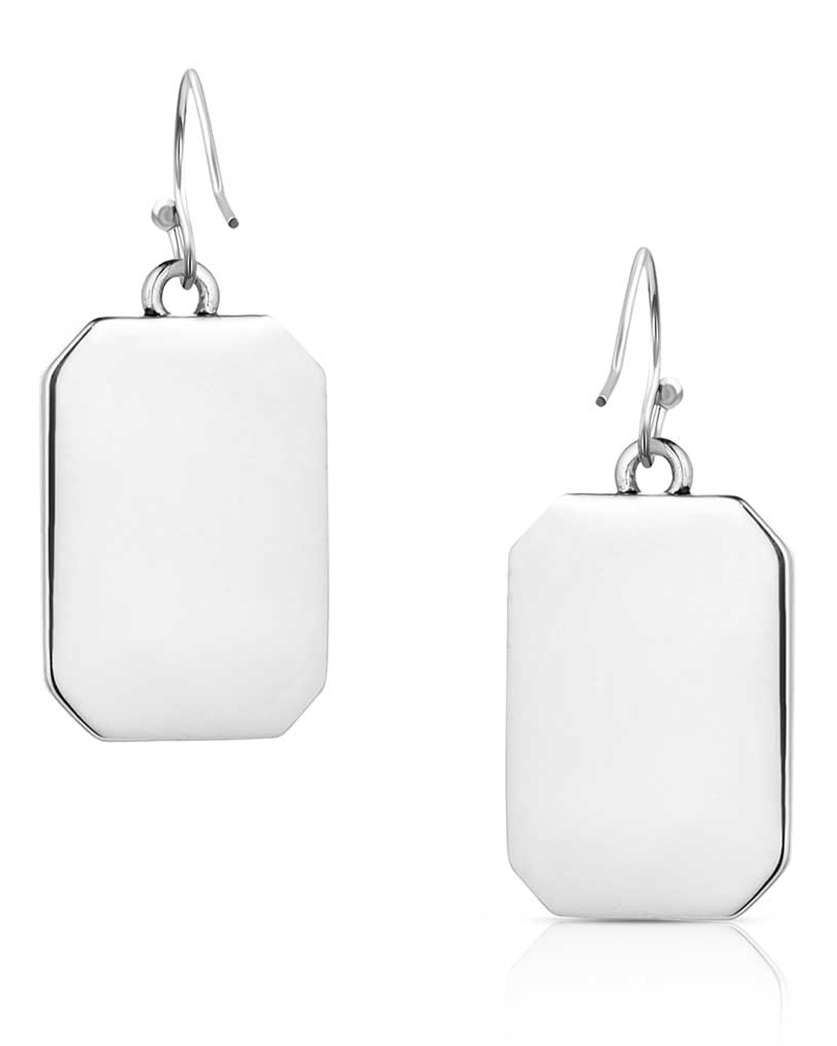 The Turquoise Sky Earrings will dress up any outfit. A crafted turquoise stone with compressed copper is the main focal point. A silver tone rectangle holds each stone and is etched with details and black paint. These earrings have hypoallergenic French wires.