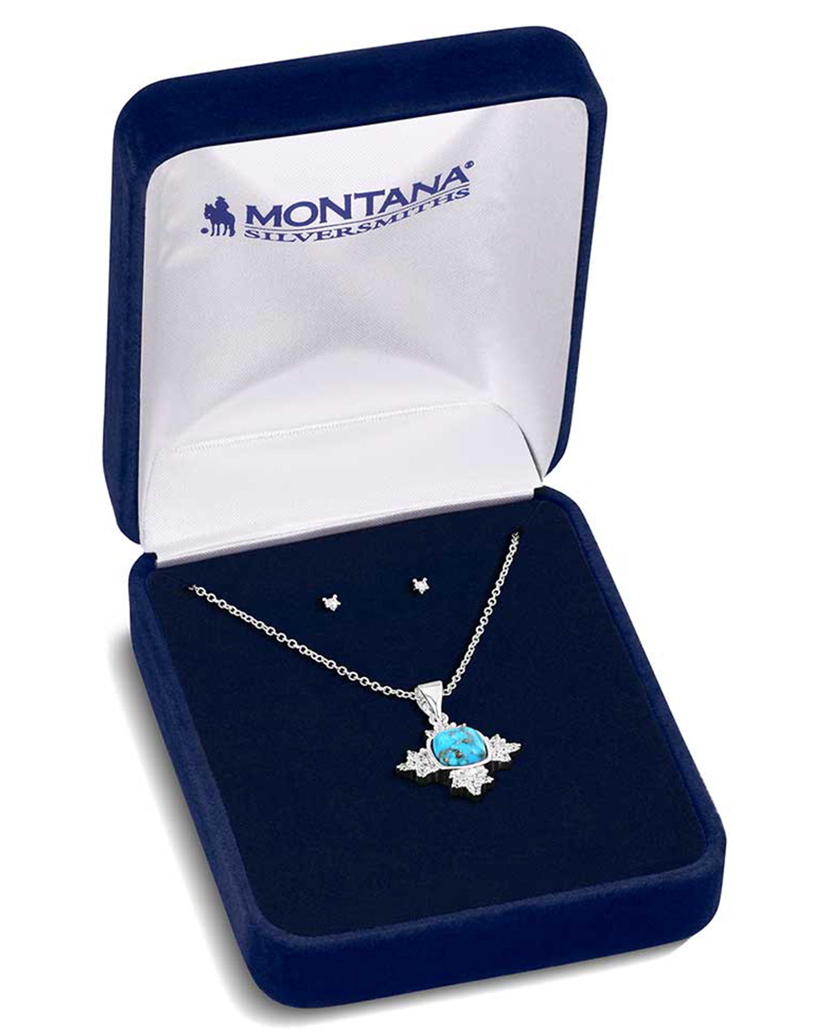 Give any outfit an upgrade with the simple yet elegant Warm Embrace Jewelry Set. A vibrant turquoise stone sits in the center of the pendant with sparkling cubic zirconia crystals on all four sides. The earrings are clear cubic zirconia crystal studs, giving the jewelry set added shine. This versatile combination creates a timeless look for any occasion. The necklace has a 20-inch adjustable cable chain.