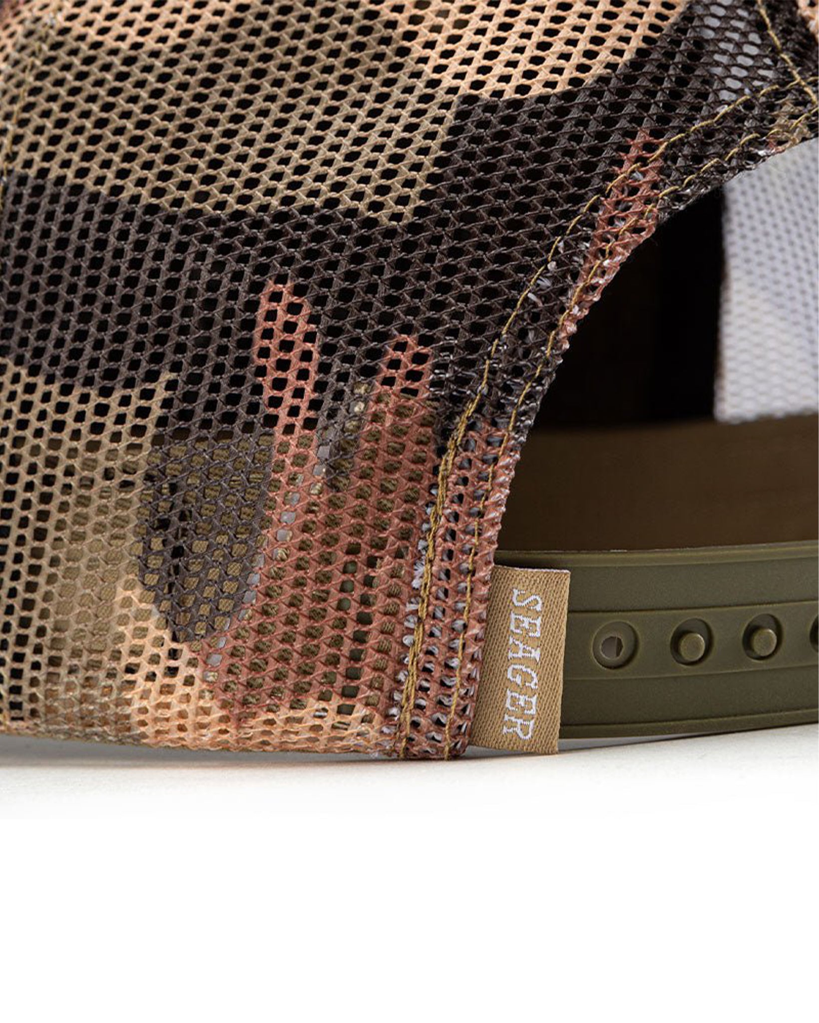 Our classic 'Wilson' Snapback, now in a Duck Camo colorway with a camo mesh backing. With more structure and breathability, this hat is as comfortable as it is durable.