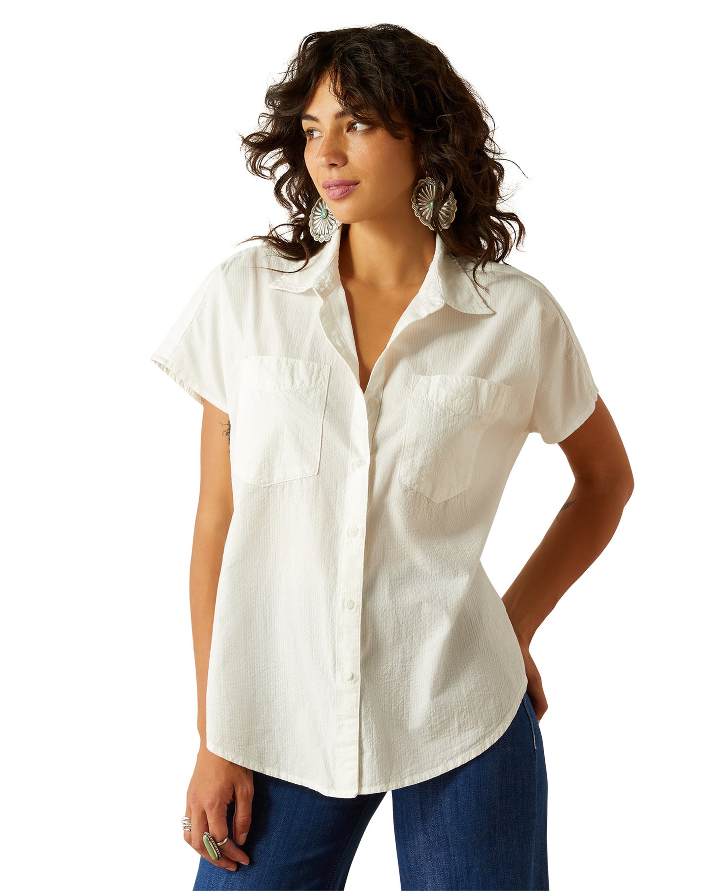 A high-summer staple, this light, airy shirt can be worn a million different ways. Layer it over a tank, knot it over cutoffs, or half-tuck it into jeans—the outfit possibilities are endless.