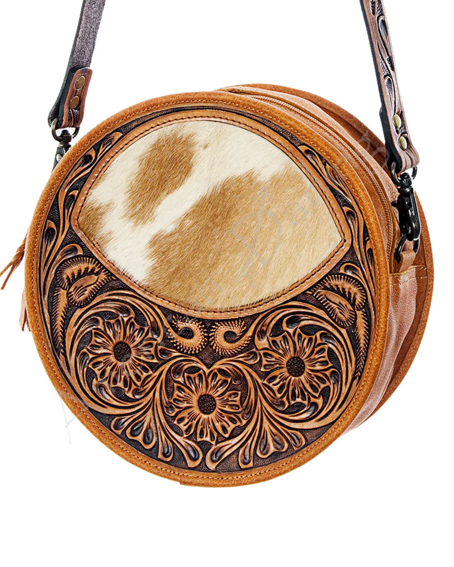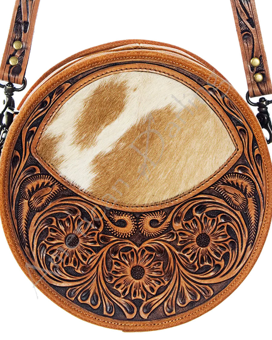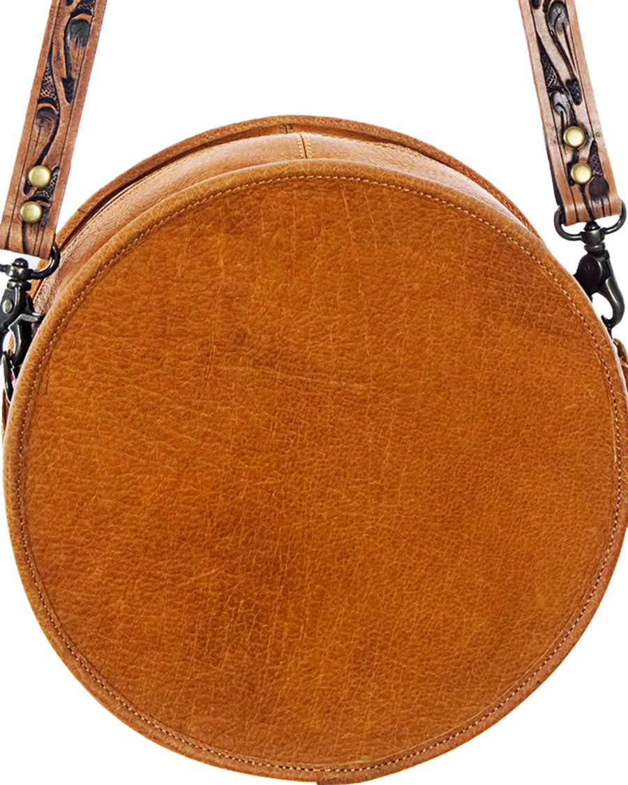 Are you looking for a stylish yet functional accessory to accompany you on your everyday adventures? Look no further than the Bronco Beauty Canteen Purse! Crafted from genuine hide and shaped like a perfect circle, this elegant bag will be the envy of all your friends! The intricate tooling on the exterior is ultra-stylish and adds an extra dose of charm to its look. Perfect for carrying daily essentials like your phone, wallet, keys, and makeup, the floral design radiates beauty in every aspect. Take on any challenge with ease - stand out from the crowd with the Bronco Beauty Canteen Purse!