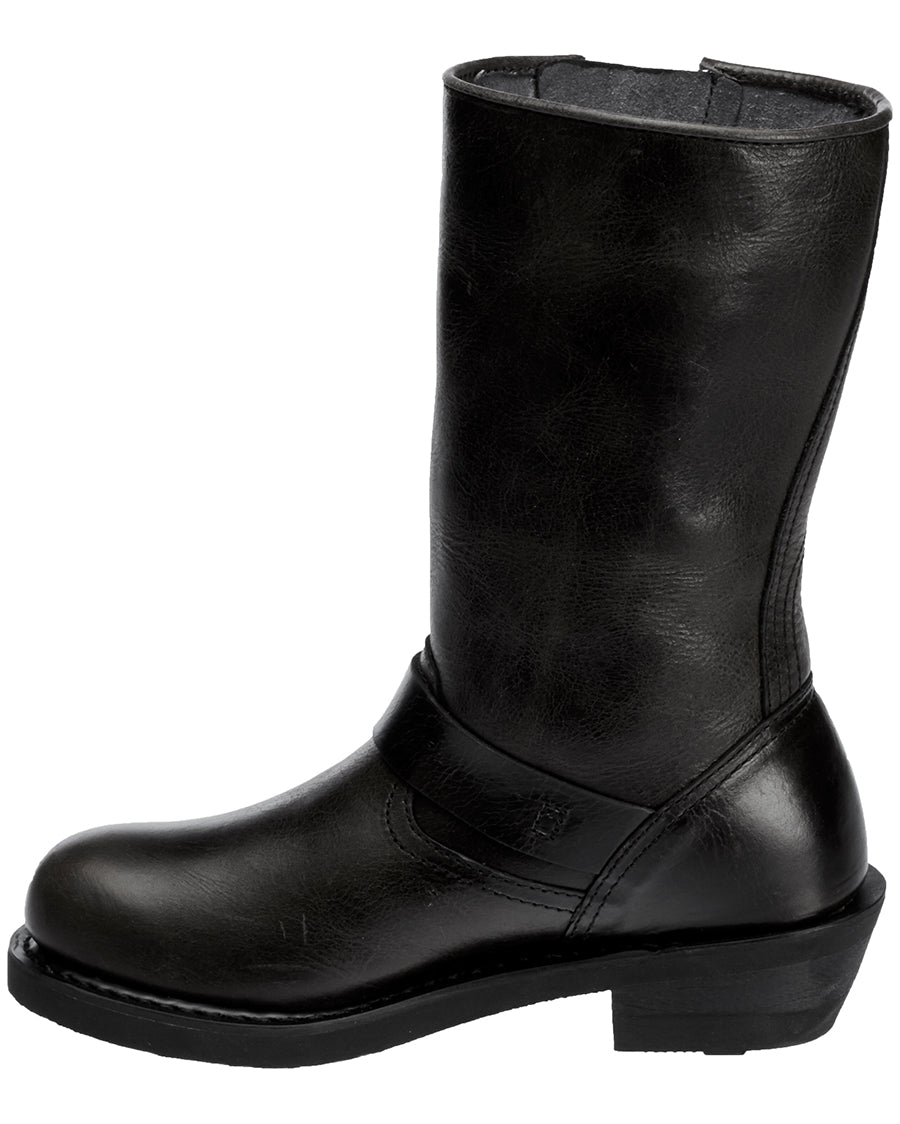 You don’t have to ride a motorcycle to appreciate these Harley Davidson boots. These boots have the look of a traditional motorcycle boot with a twist. For instance, the double buckle style instead of the classic harness, give them a unique touch. With the Harley Davidson logo embossed on the shaft, you know that you’re still sporting the iconic brand. The pull-on shaft features a full length cushion sock lining. The soles are rubber with a low 1.5” heel.