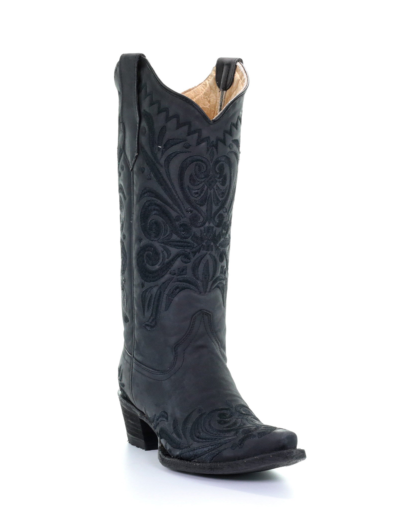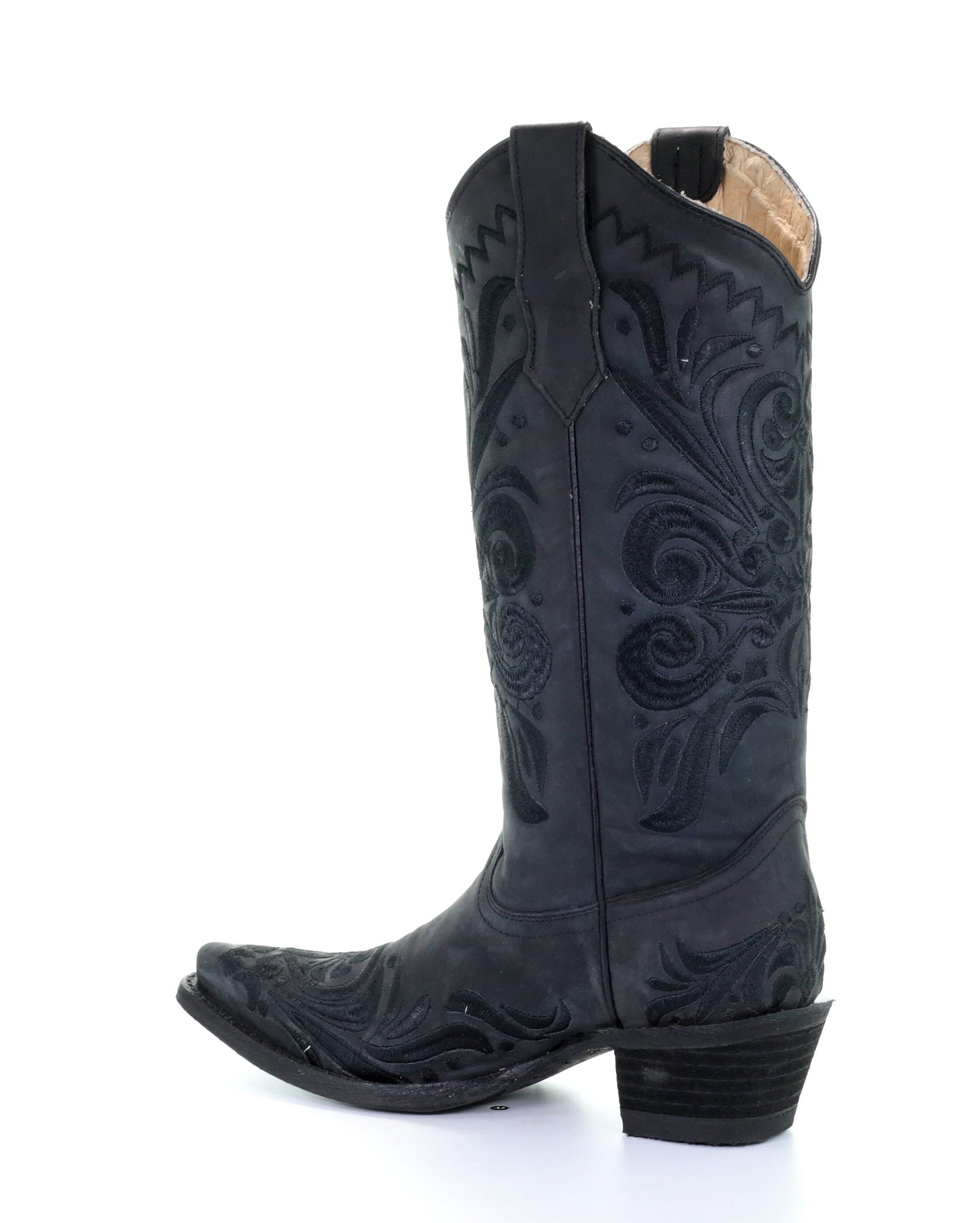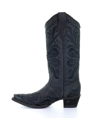 Introducing the Corral Women's Embroidery Filigree Western Boots - a perfect blend of style, craftsmanship, and versatility that will elevate your wardrobe to new heights. These stunning black boots feature intricate black embroidery, making them a timeless piece that will add a touch of sophistication to any outfit. Boasting a versatile appeal, these boots are designed to complement any ensemble - from a casual day out to a wild night on the dance floor. Their classic black hue and intricate embroidery make them a perfect match for any outfit, whether you're rocking a pair of jeans, a flowy dress, or a chic skirt. Step up your fashion game with the Corral Women's Embroidery Filigree Western Boots and make a statement wherever you go. Grab your pair now and unleash the fashion-forward cowgirl within you!