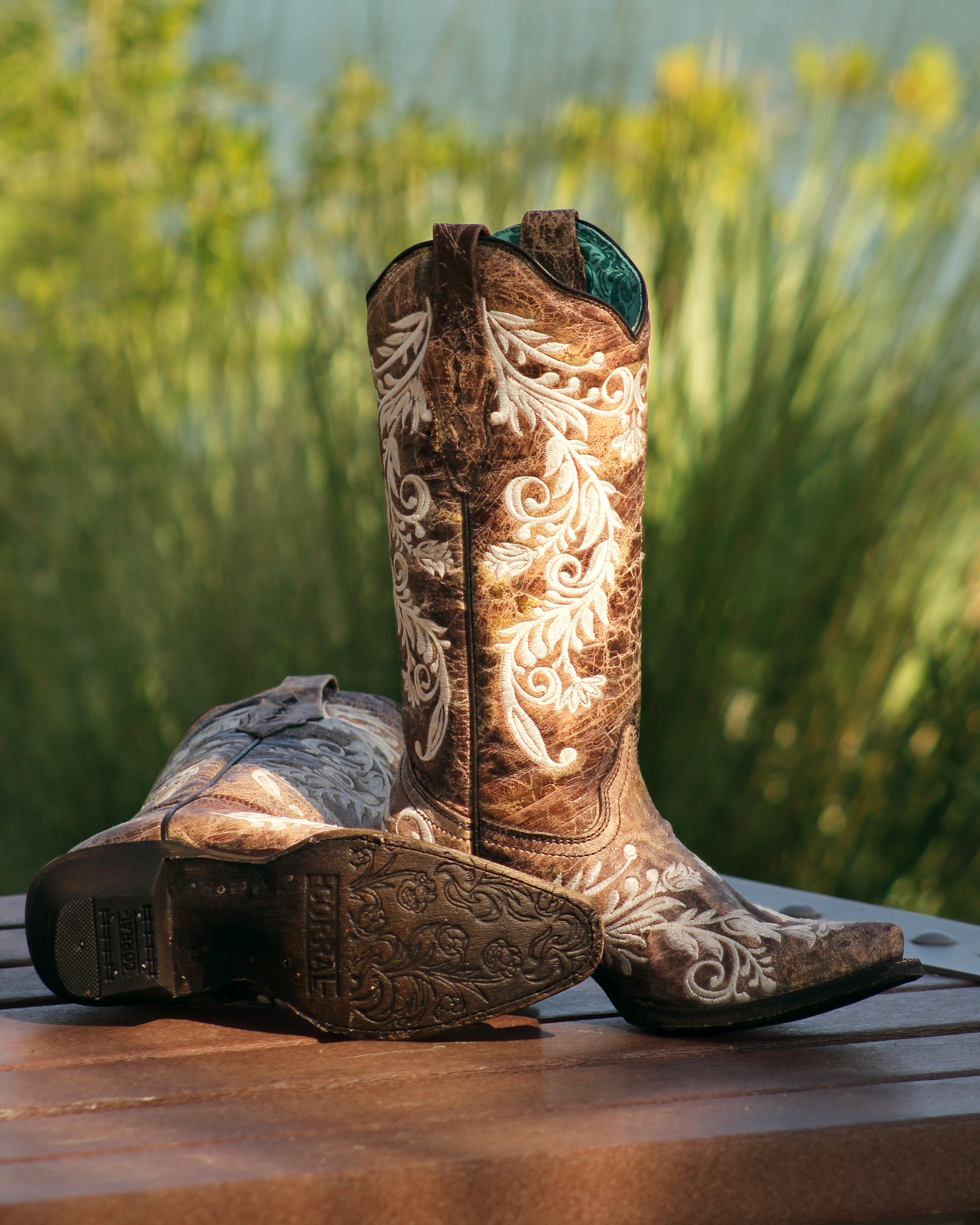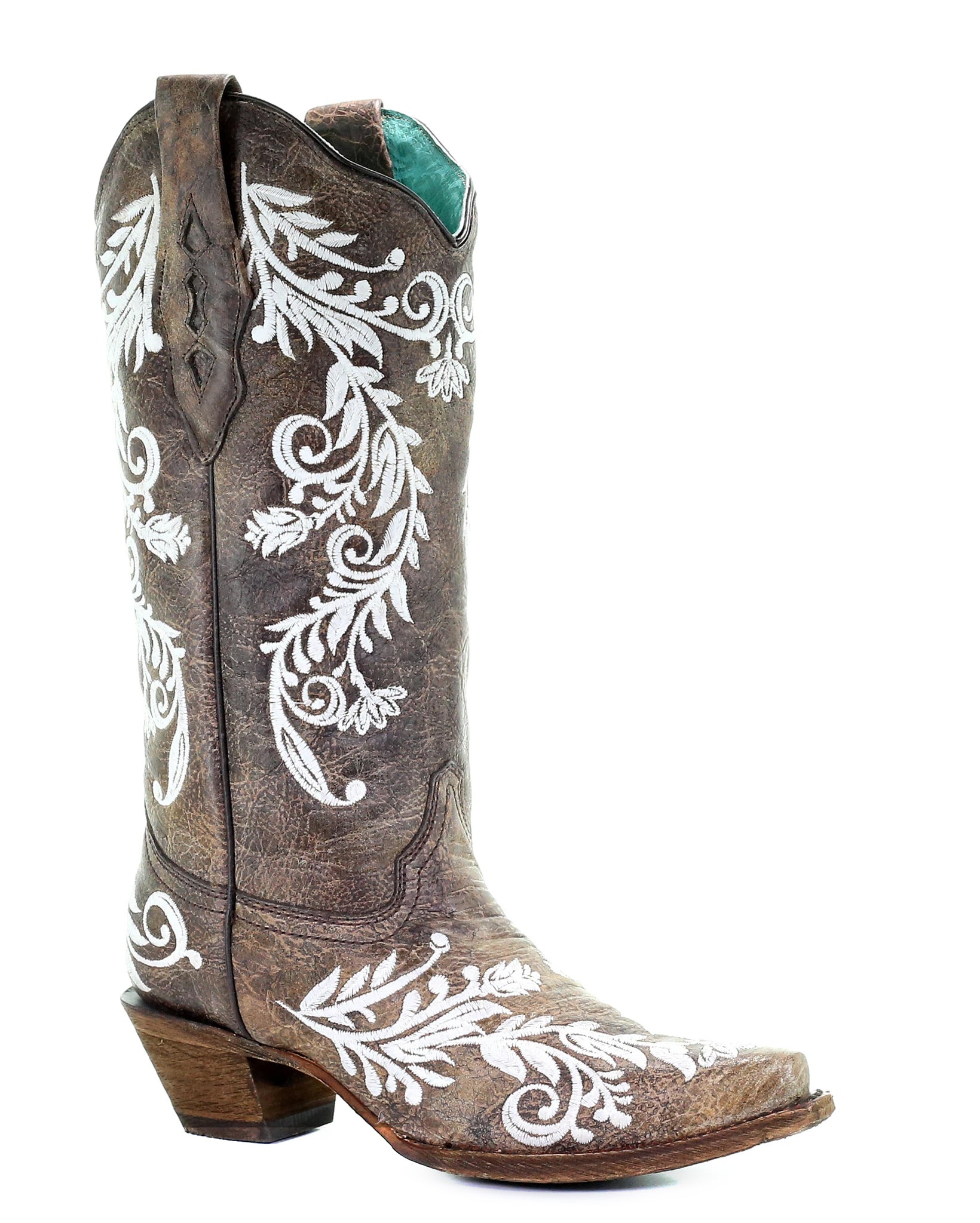 Introducing the Corral Women's Floral Embroidery Glow in the Dark Boots - a remarkable fusion of rugged chic and timeless elegance. Crafted from exquisite, distressed leather in a warm and inviting brown hue, these boots guarantee to make a statement wherever you go. The beauty of this classic boot lies in its delicate details, which blend seamlessly with its rugged charm. The striking white floral stitching provides a delightful contrast against the deep brown backdrop, while the stitching glows in the dark making these boots perfect for anyone wanting to make a statement. The snip toe gracefully elongates the foot, ensuring both style and comfort for every step you take. Perfectly suited for any occasion - be it a casual afternoon stroll, or a fun evening event - the Corral Women's Floral Embroidery Glow in the Dark Boots will become your go-to footwear for years to come. Slip into these classic boots, and be prepared to turn heads and steal hearts with their undeniable allure. Don't wait to embrace the perfect blend of style, comfort, and resilience; order your pair now and experience the exceptional quality of these captivating boots.