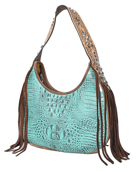 - The shoulder strap is adjustable and made of 100% genuine vegetable tanned Cowhide Leather with a hand tooled pattern.