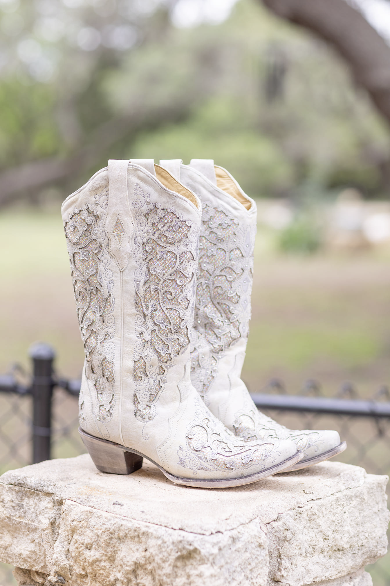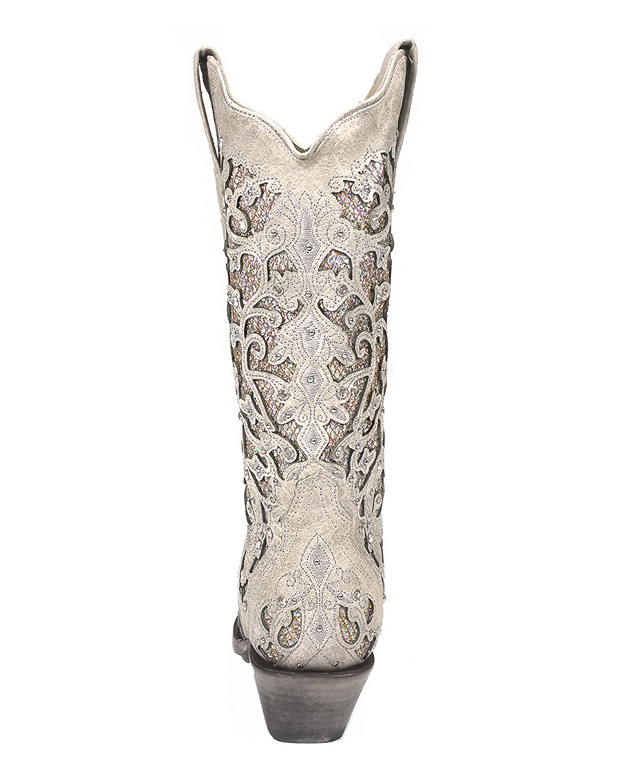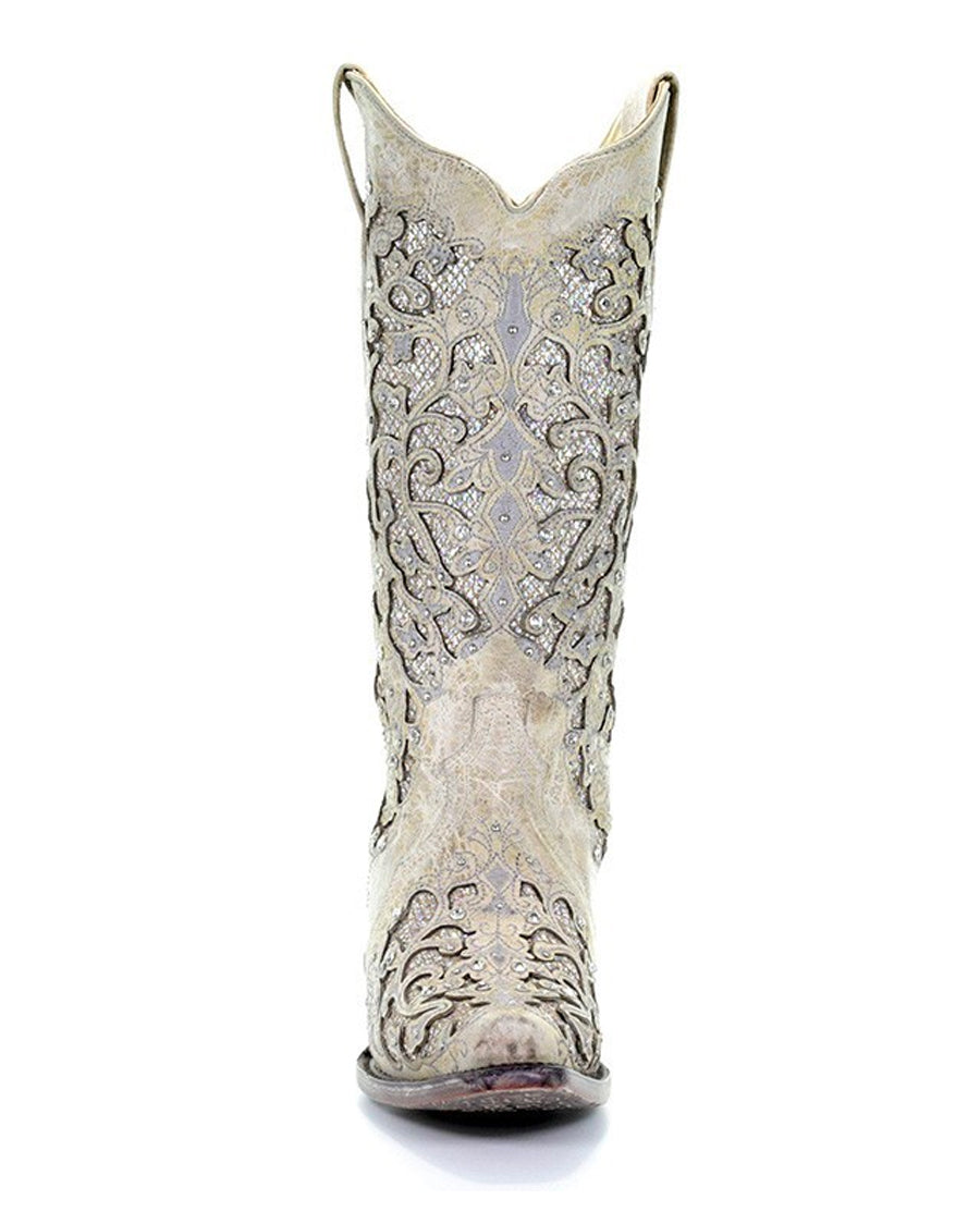 Introducing the Corral Women's Glitter & Crystal Wedding Boots, designed to bring a touch of sparkle and elegance to every step you take! Perfect for weddings and special events, these boots are the epitome of style, comfort, and versatility. Every inch of these boots is adorned with glitter and stunning crystal embellishments, ensuring you make a statement wherever you go. The intricate patterns and shimmering elements create an irresistible, captivating allure that is hard to ignore. But wait, there's more! The intricate stud detailing takes these boots to the next level, elevating their look and feel to reach the pinnacle of elegance. Whether you're making your grand entrance as a blushing bride or simply seeking to make every day feel like a special occasion, the Corral Women's Glitter & Crystal Wedding Boots are your picture-perfect companion. In spite of their luxurious appearance, these beauties effortlessly transition from formal events to casual outings. The phrase "goes with anything" takes on a whole new meaning as these boots blend seamlessly into your wardrobe, adding a touch of fairy-tale magic to even the most ordinary of outfits. Pair them with denim for a chic daytime flair, or slip them on with a stunning gown for an unforgettable evening.