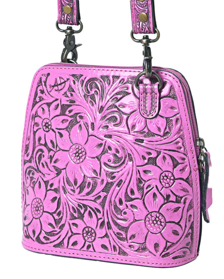 - The shoulder strap is adjustable and made of 100% genuine vegetable tanned Cowhide Leather with a hand tooled pattern.