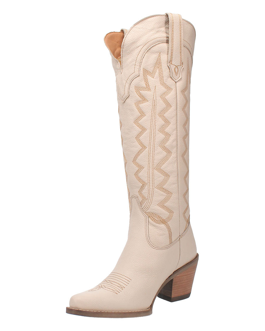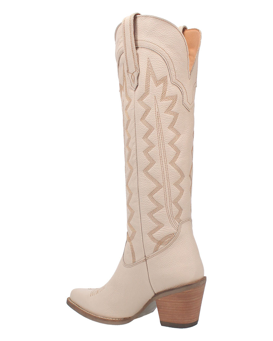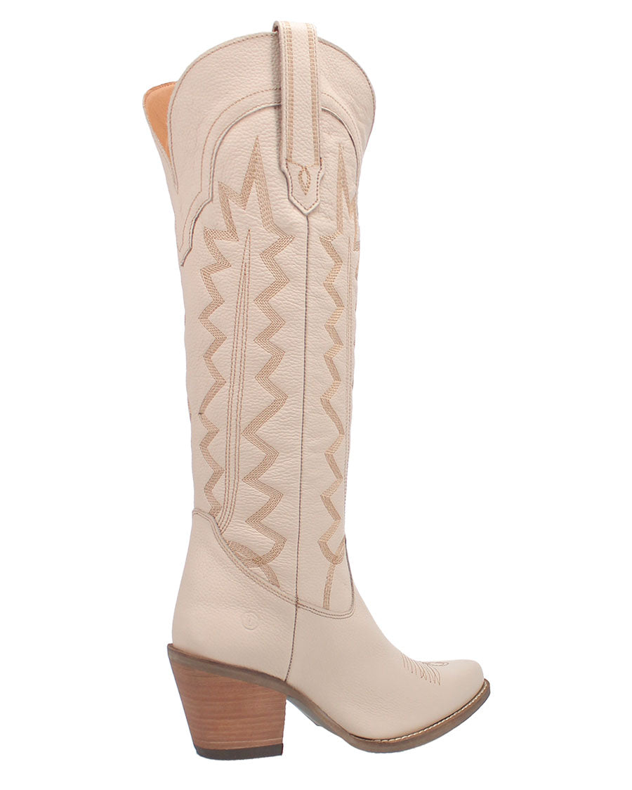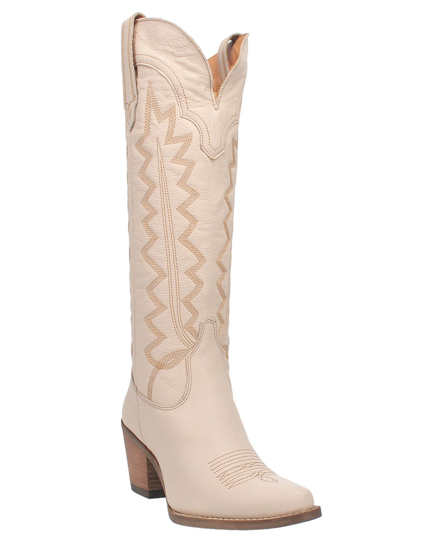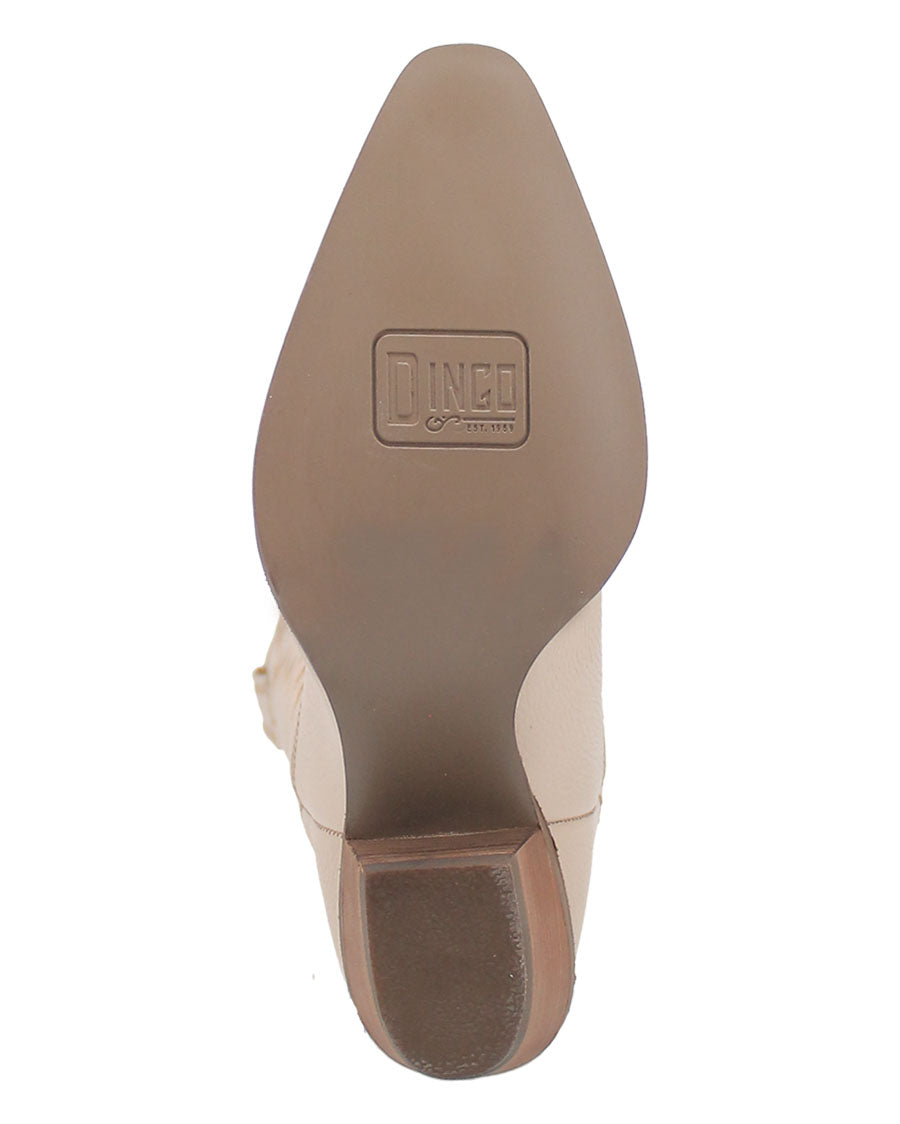 Take your standards to the next level with the Dingo 1989 High Cotton Boot. This boot has it all: the classic western stitching and body, but with a chic twist. The fashion snip toe, 16-inch height and 3” heel brings this boot and any outfit you pair it with to the highest degree.