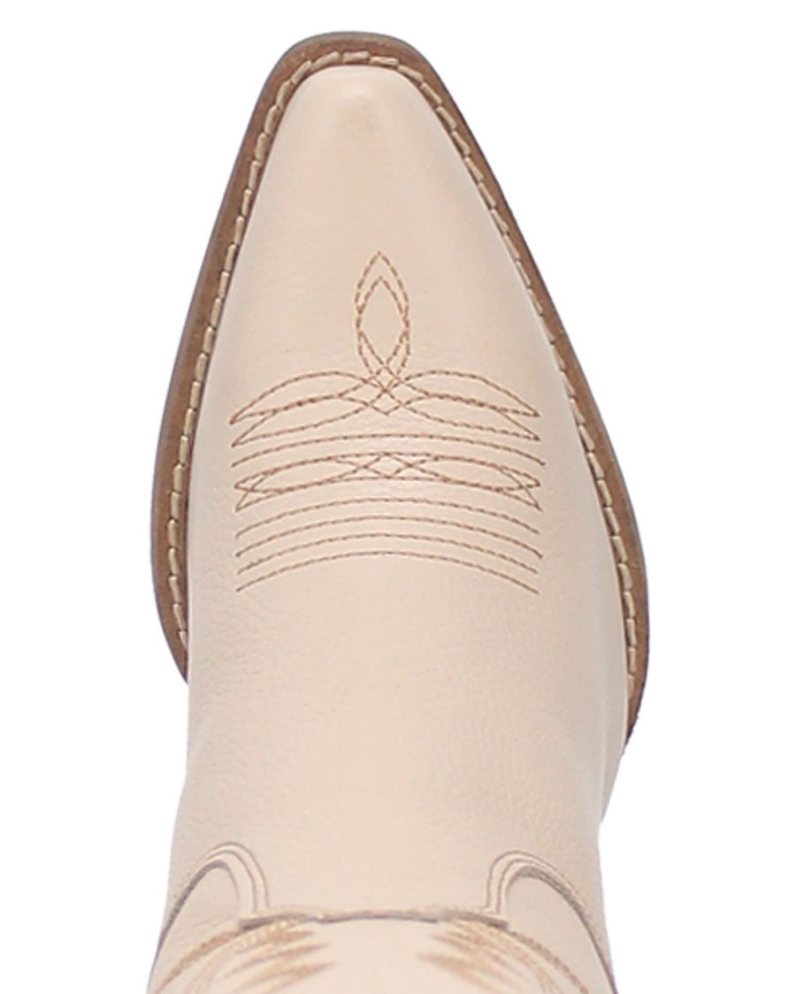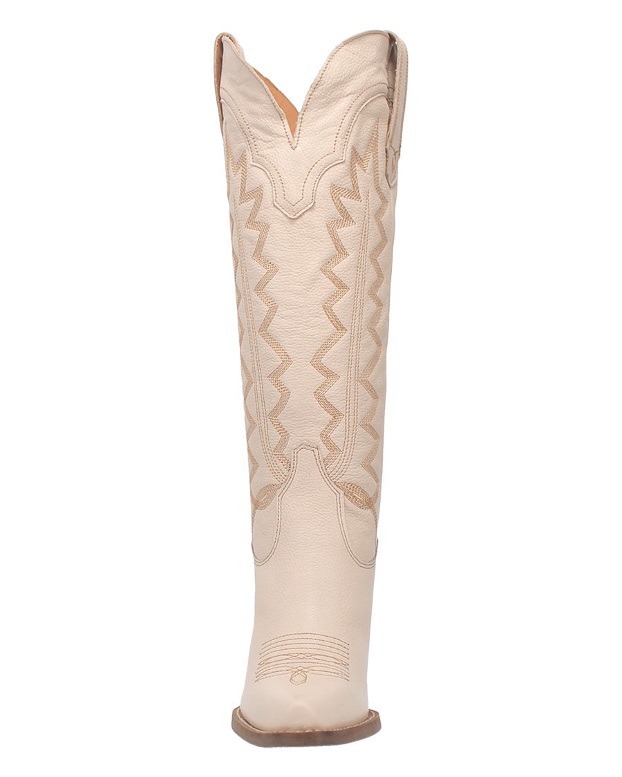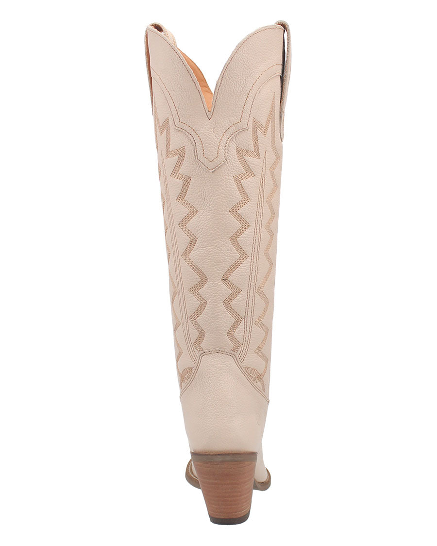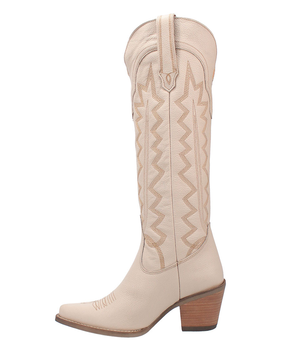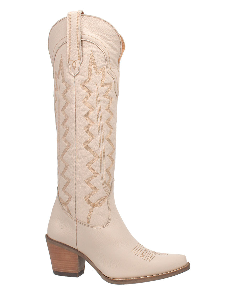 Take your standards to the next level with the Dingo 1989 High Cotton Boot. This boot has it all: the classic western stitching and body, but with a chic twist. The fashion snip toe, 16-inch height and 3” heel brings this boot and any outfit you pair it with to the highest degree.