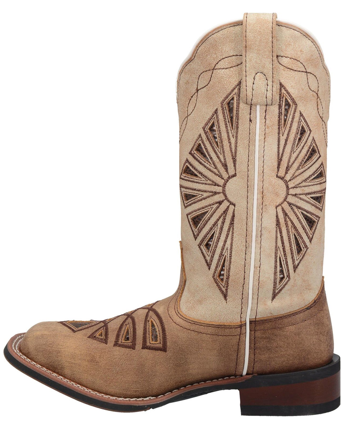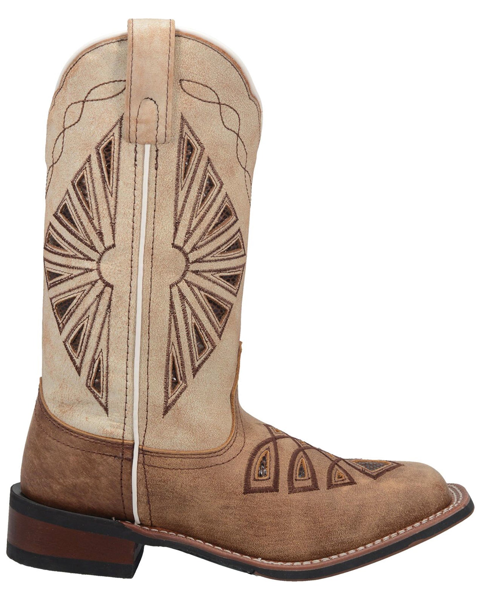 A truly unique design highlights the Kite Days boot. The attention to detail and embroidered design is amazing. Made of all leather with popular broad square toe and stockman heel.