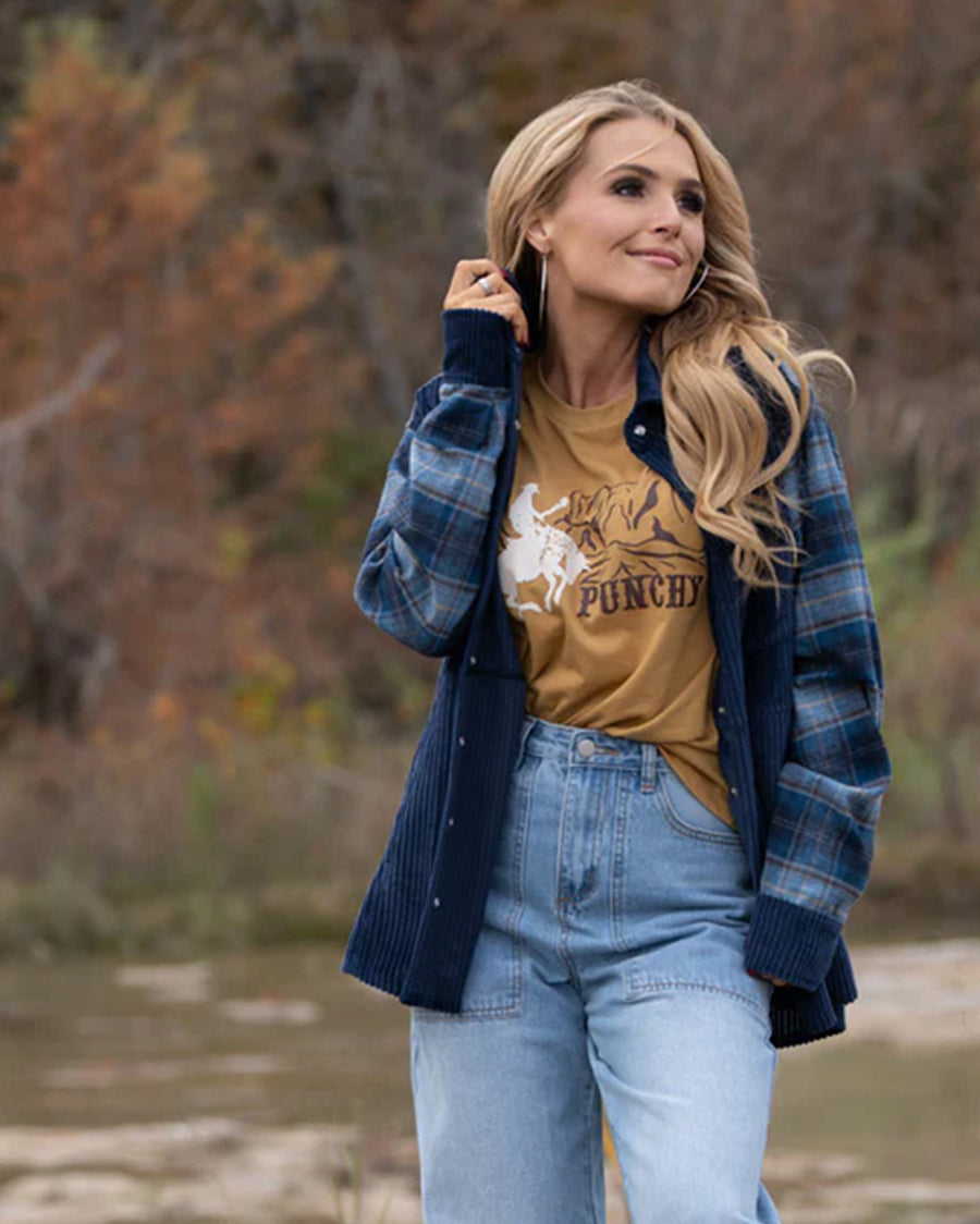 - Navy Shacket with Blue/Light Blue Plaid Pattern