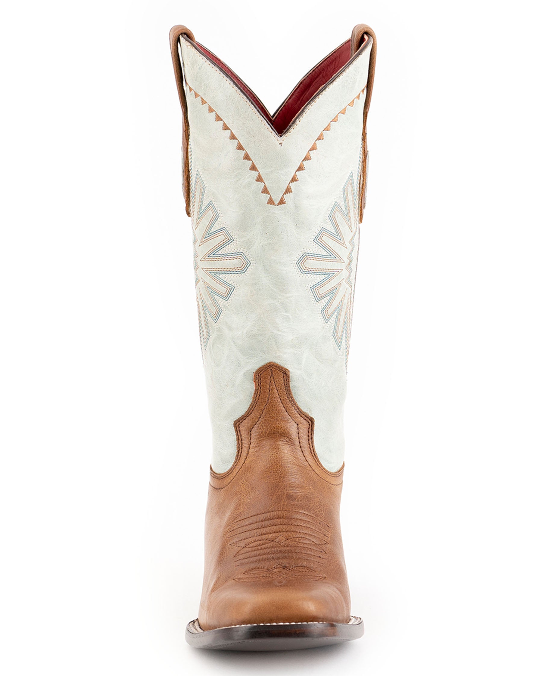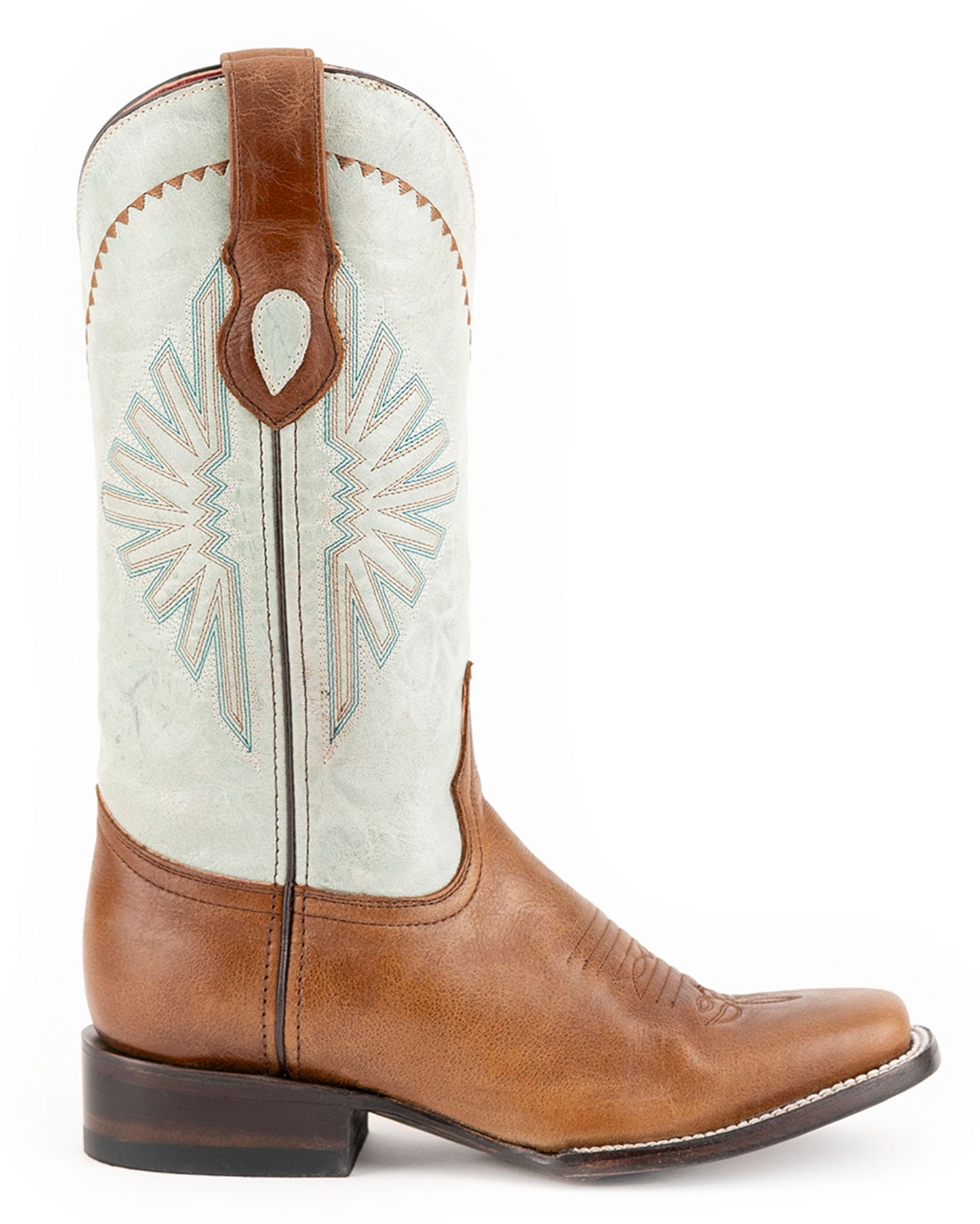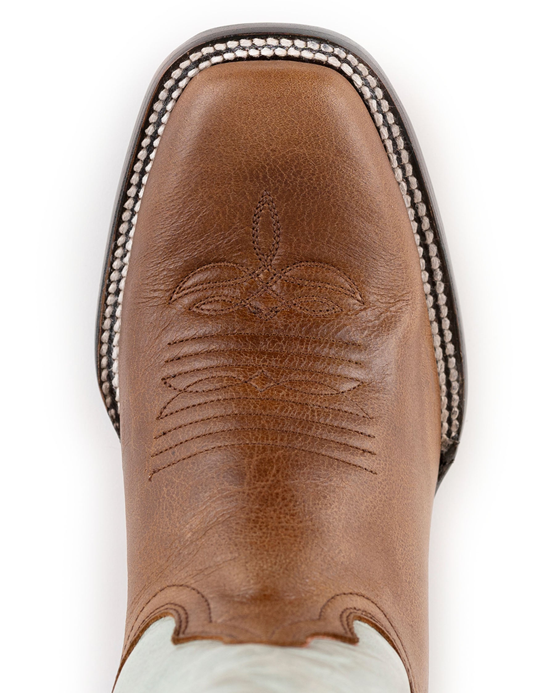 The Santa Fe boot is based on classic simplicity. A richly tanned leather square toe with a beautifully accented contrast upper, these boots are great for both riding and going out on the town.