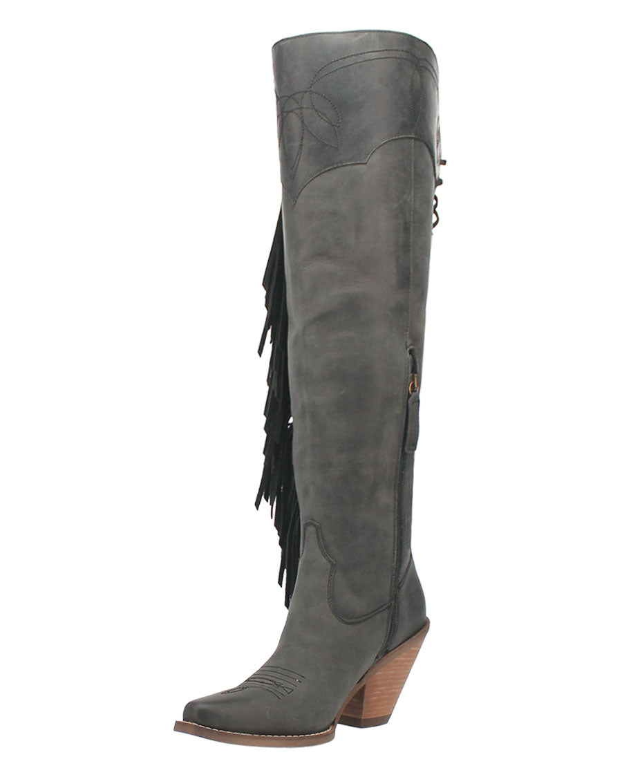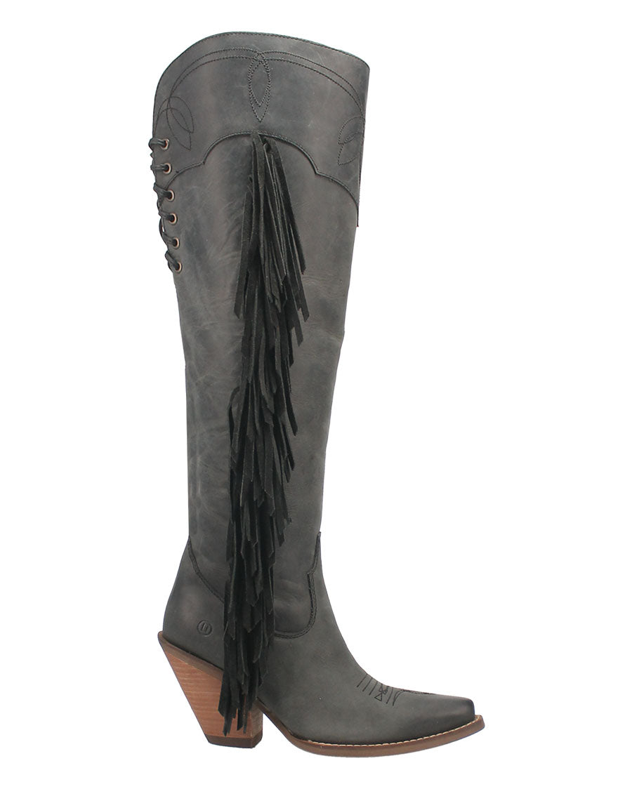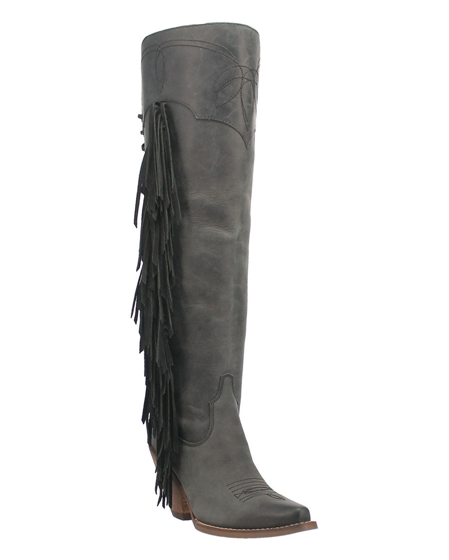 If your outfit is out of this world, then your boots should be too. Meet the Sky High boot from Dingo 1969, your new fringy favorites that are available in several color options. With a fashion toe, chic 3-inch heel and over-the-knee height, these boots scream Sky High slay.