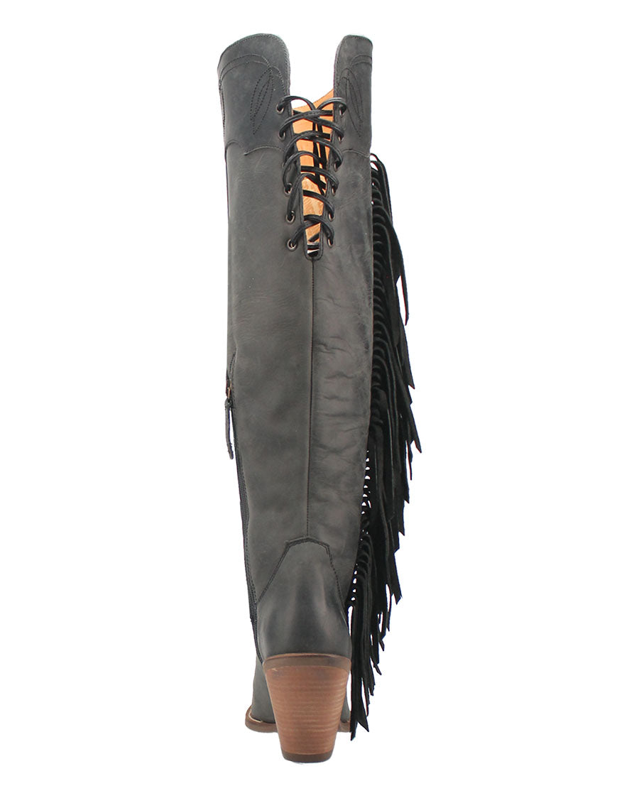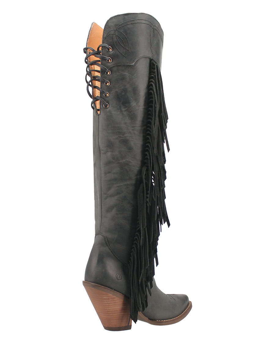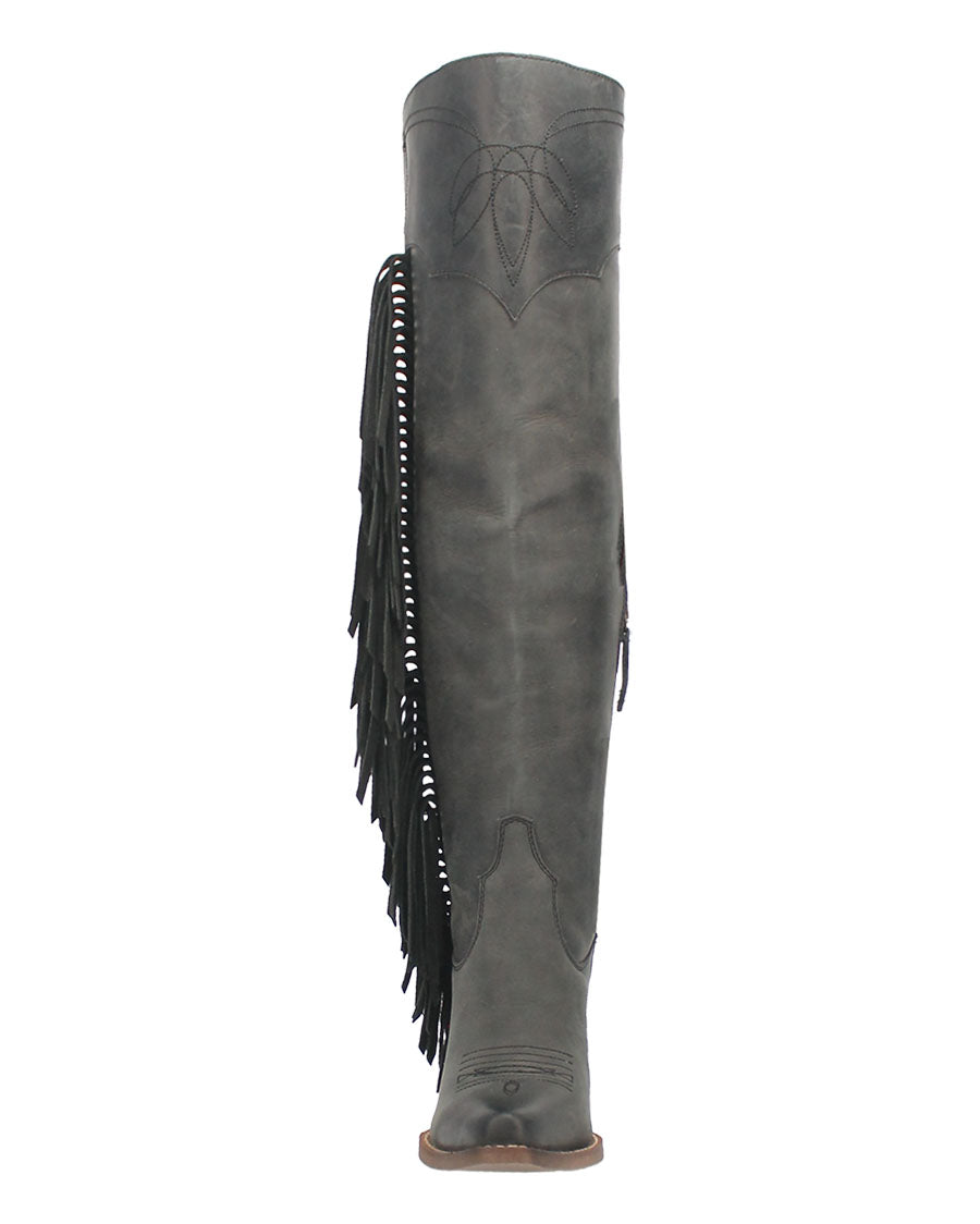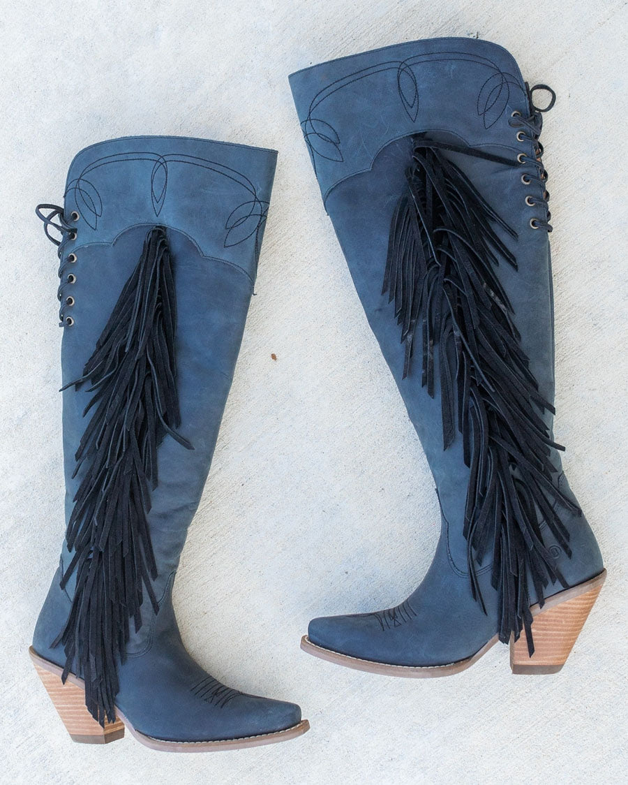 If your outfit is out of this world, then your boots should be too. Meet the Sky High boot from Dingo 1969, your new fringy favorites that are available in several color options. With a fashion toe, chic 3-inch heel and over-the-knee height, these boots scream Sky High slay.