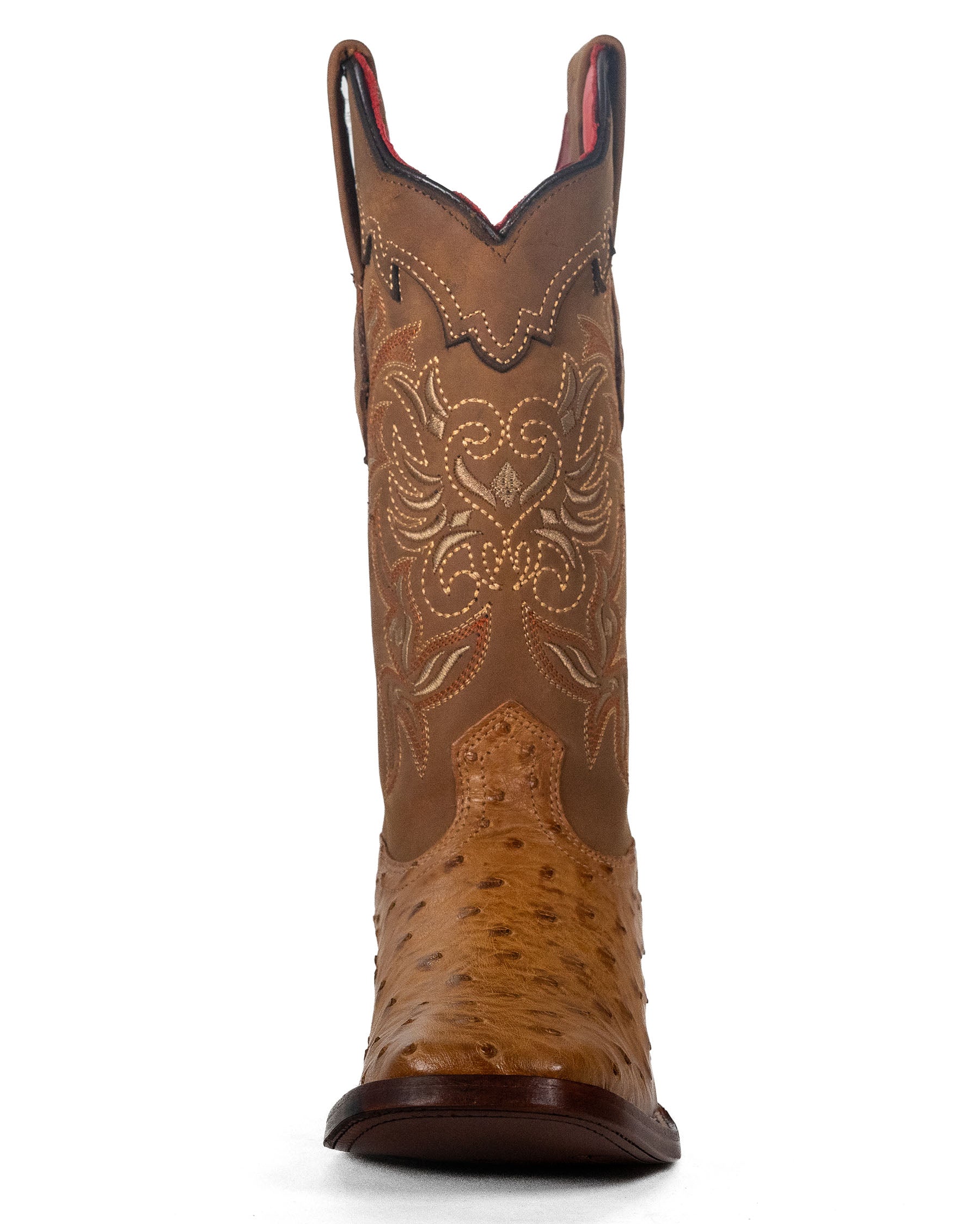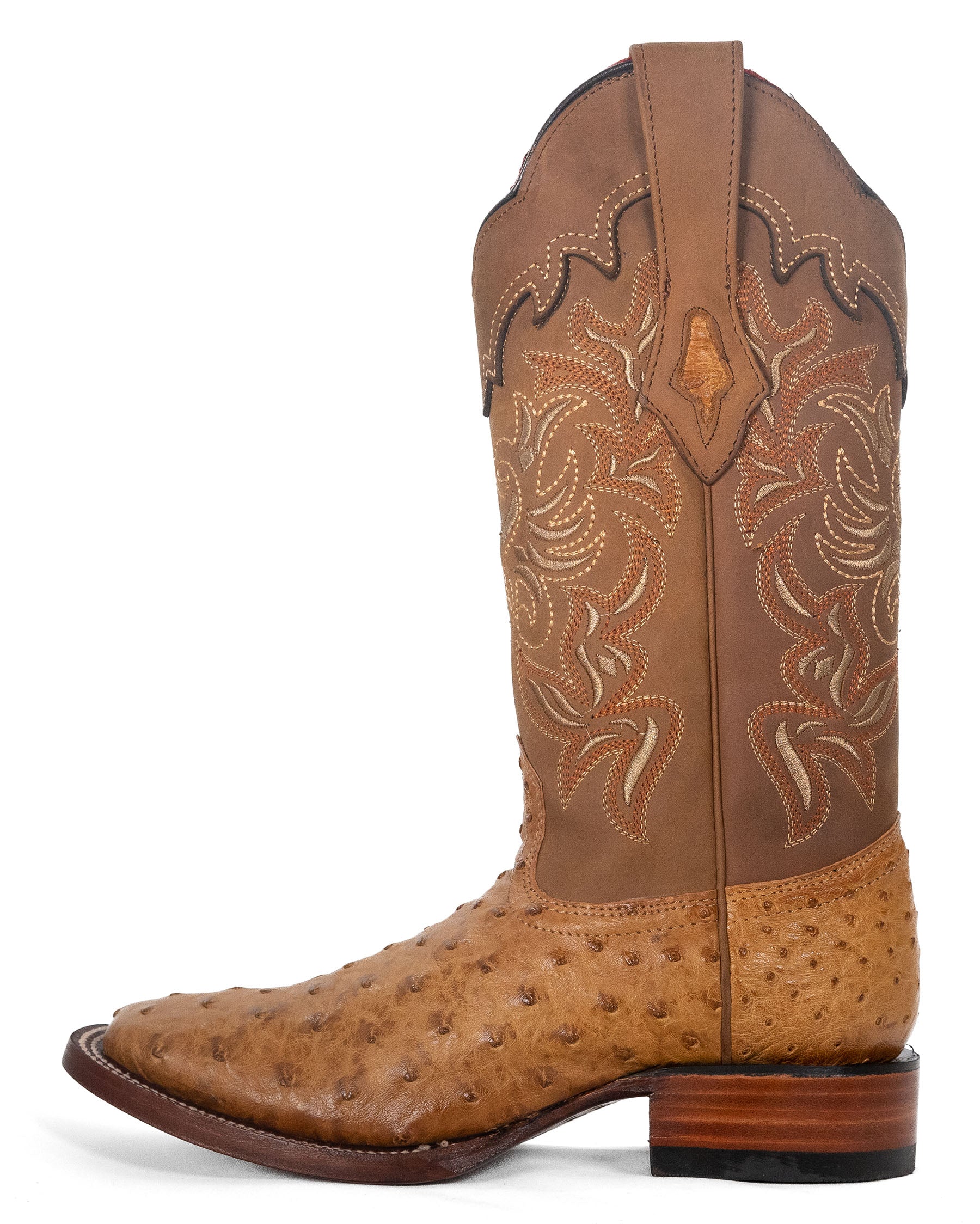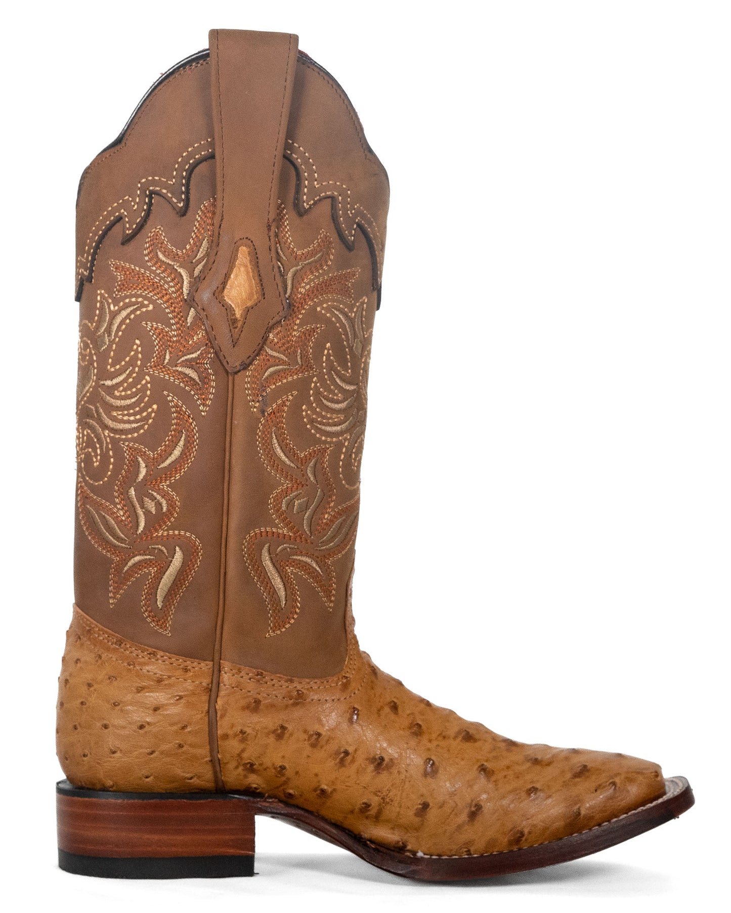 Introducing the Sofia Ostrich Boot! This beautiful, handcrafted boot is made from supple, full-quill ostrich leather. It features sweeping, hand-stitched details on the shaft and heel, making it a versatile and stylish addition to any cowgirl's wardrobe. With its classic design and luxurious materials, the Sofia Ostrich Boot is sure to turn heads wherever you go!
