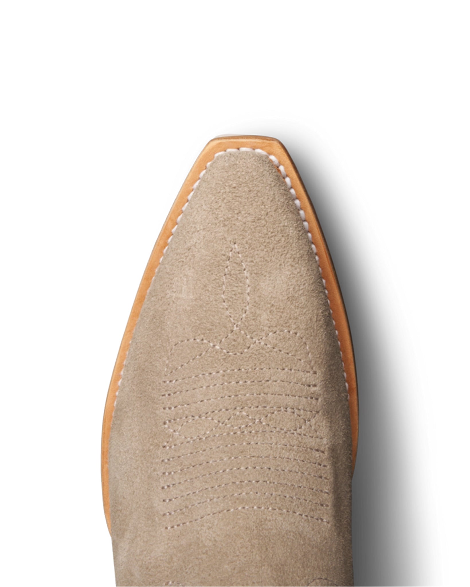 Meet The Annie, our best-selling cowgirl boot. Tall and timeless, a beautiful tonal stitching pattern adorns its 14” shaft, the top of which features a deep scallop for a comfortable, flattering fit. A fashion-forward snip toe leads the way and our signature toe stitching rounds out a classic look open to a wide range of styling possibilities. These premium boots are not to be missed and will age beautifully over time.