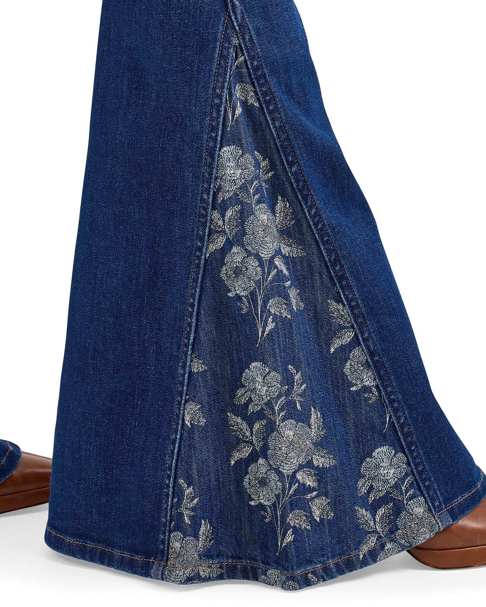 Meet the Women's Wrangler Retro Bailey High Rise Pieced Trumpet Flare Jean. It offers an ultra-flattering, retro-inspired flare leg with built-in floral fabric inserts on each side to create a bell-bottom look that’ll kick any outfit up a notch. These flares also come with the signature five-pocket styling, ‘W’ embroidery, and rope logo patch for Western authenticity. They’re woven from lightweight denim made of cotton with just a hint of stretch to keep you comfortable from sunup to sundown.